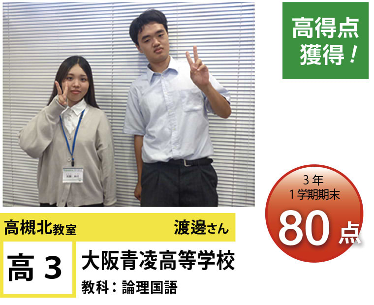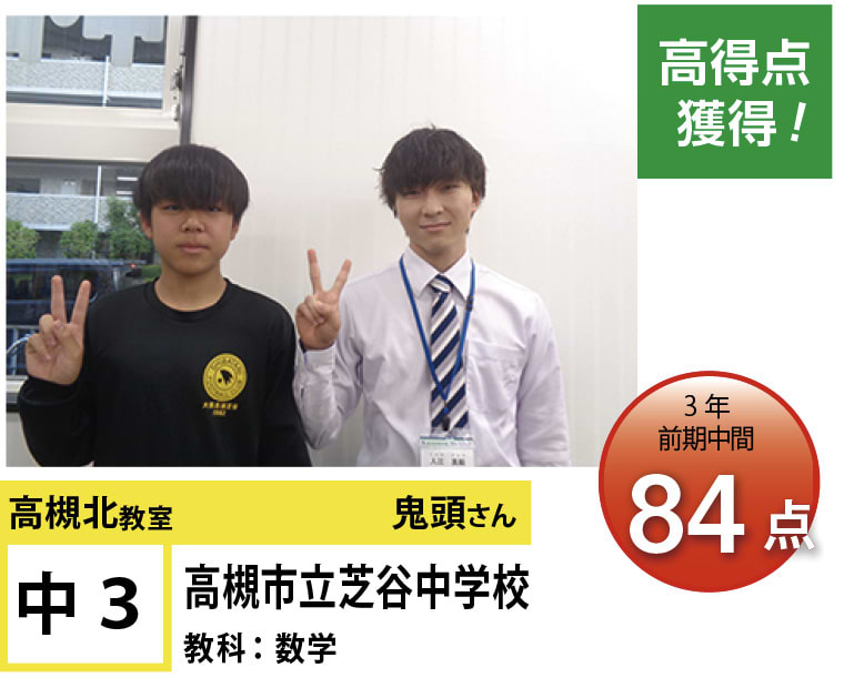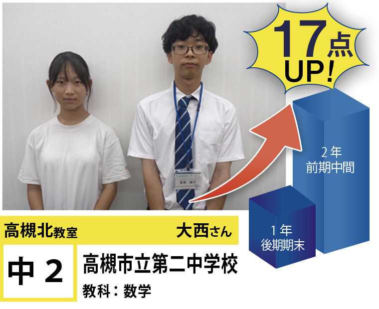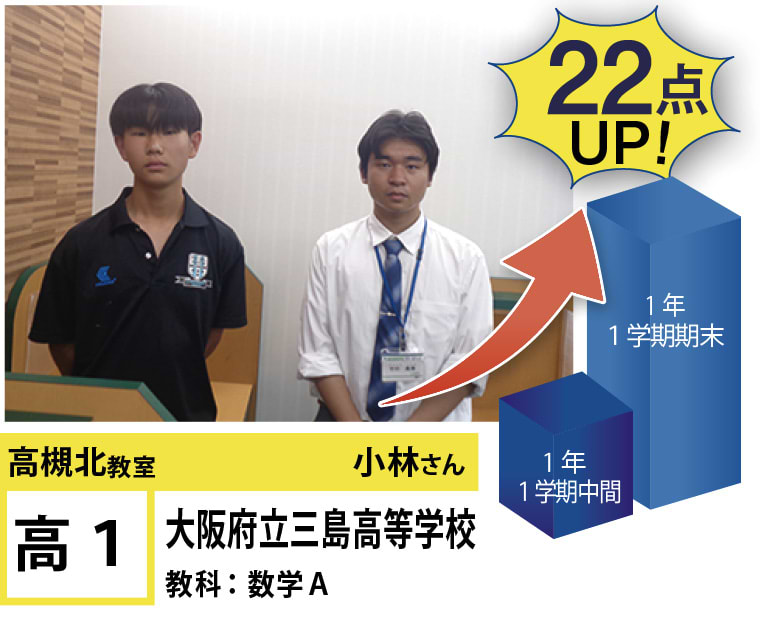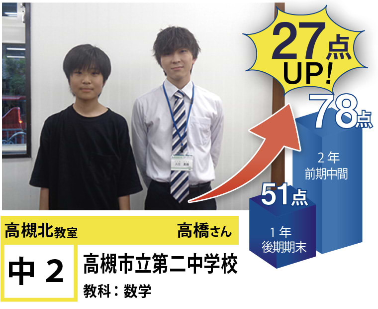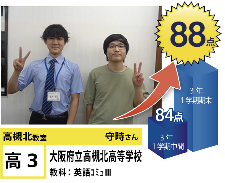高槻北教室は結果を出す教室です。膨大なデータと経験に基づく適切な進路指導、定期テスト答案や模試個票分析からの高度なカリキュラム作成等、他塾には真似のできない教務力を誇ります。それを支える経験豊富な講師陣を擁し、地元での高い実績を誇っています。