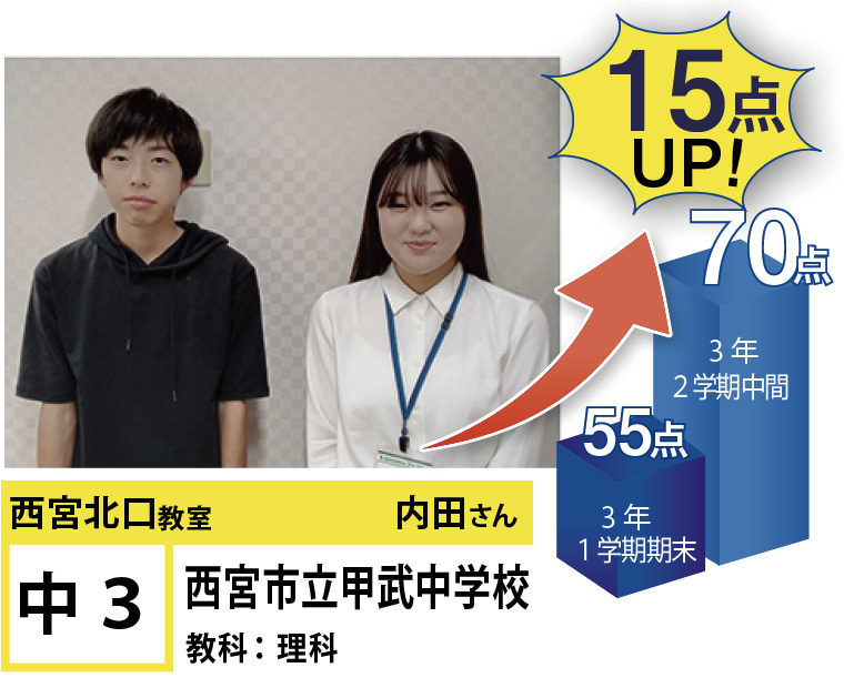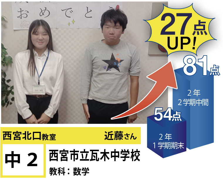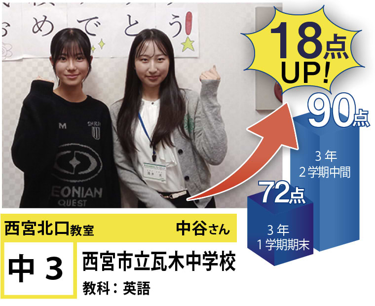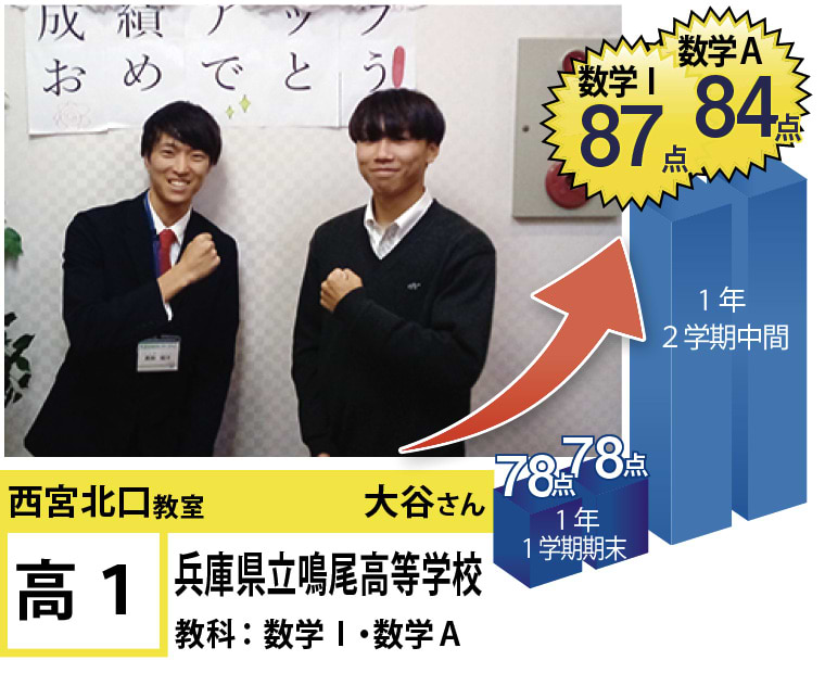 フリーステップ西宮北口教室は点数アップと大学受験に強いフリーステップの教室の中でも高校生指導においては大学合格実績、中学生指導においては定期テストの点数アップに定評のある教室です。中学受験生はもちろんのこと、公立中学進学のために学習している小学生も難関大を目指す高校生や定期テストで点数アップを実現してくれている中学1・2年生、高校受験に向かう中学3年生が学習している姿を見て、刺激を受けて学習に前向きに取り組んでくれています。