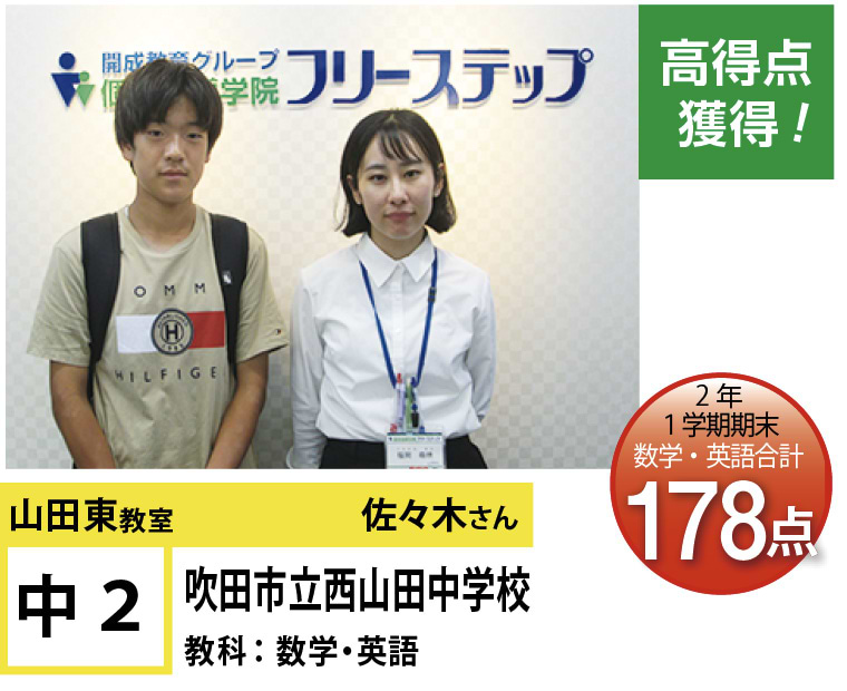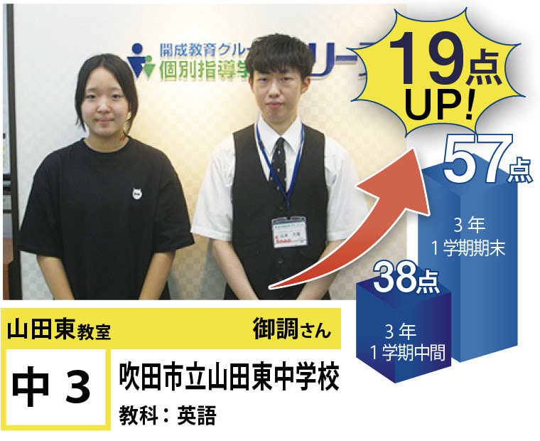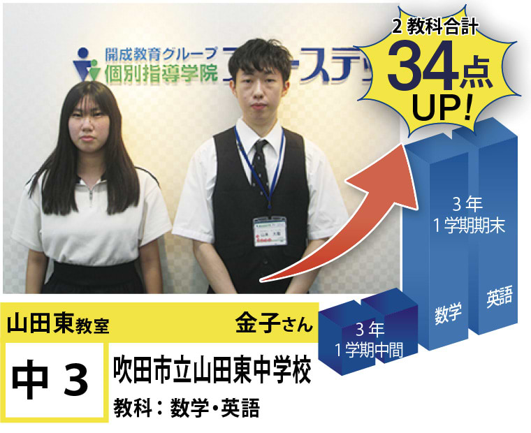 | 在籍生徒 | 小学校・・・北山田小学校、西山田小学校など 中学校・・・山田東中学校、西山田中学校、開明中学校など 高校・・・北千里高校、追手門学院高校、箕面高校、千里高校など |