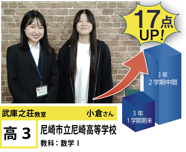 | 在籍生徒 | 小学校・・・武庫東小学校、武庫庄小学校、昆陽里小学校、神戸海星女子学院小学校など 中学校・・・武庫東中学校、武庫中学校、親和中学校、松蔭中学校など 高校・・・尼崎北高校、尼崎高校、武庫荘総合高校、尼崎双生高校、関西大学高等部、六甲学院高校など |