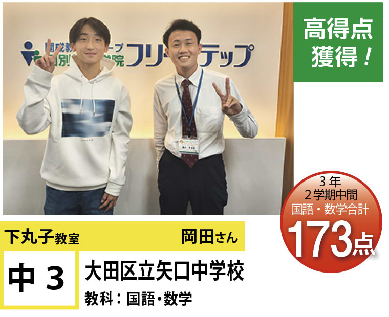 「テストの点数が伸びない」「志望校に受かるか不安」そんなお悩みや困ったことがございましたら、いつでも下丸子教室にお越しください。体験授業も随時行っておりますので個別指導塾に通われたことがある方もそうでない方も、フリーステップの体験授業を一度ご体験ください!