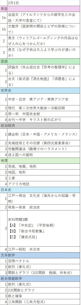 今日の千里山は風が強く、寒かったのですが、受験生の皆さん、体調は大丈夫でしょうか。明日以降から参戦する受験生諸君。本日の出題内容は以下の通りです。参考になれば幸いです。