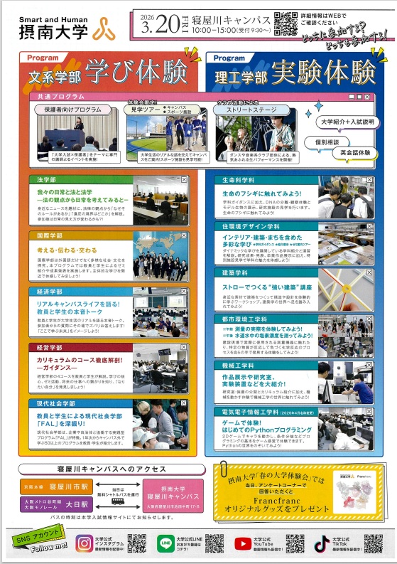 【春だ】摂南大学 文理融合 春の大学体験会【オープンキャンパスだ】