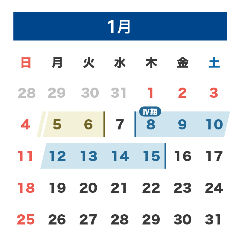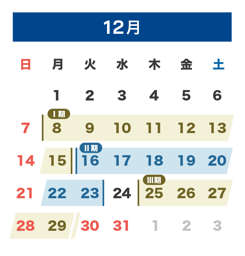 - ※12/14(日)、12/21(日)、12/24(水)、12/30(火)~1/4(日)、1/7(水)、1/11(日)は休講日です