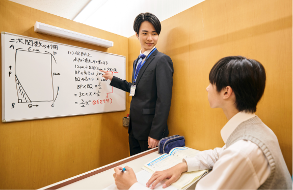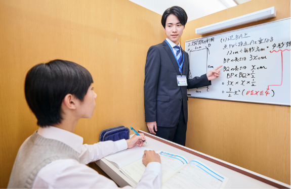 生徒一人に解説中心の授業を実施。学校の授業を独り占めしている感覚で、わからないことはその場で説明を受けることができます。
