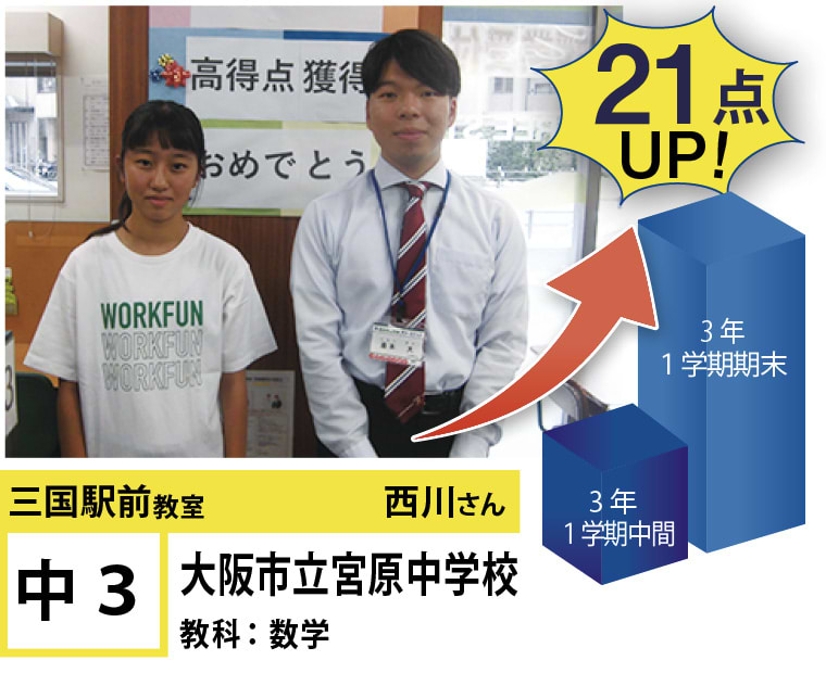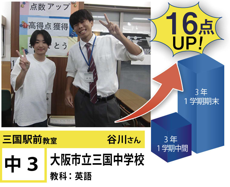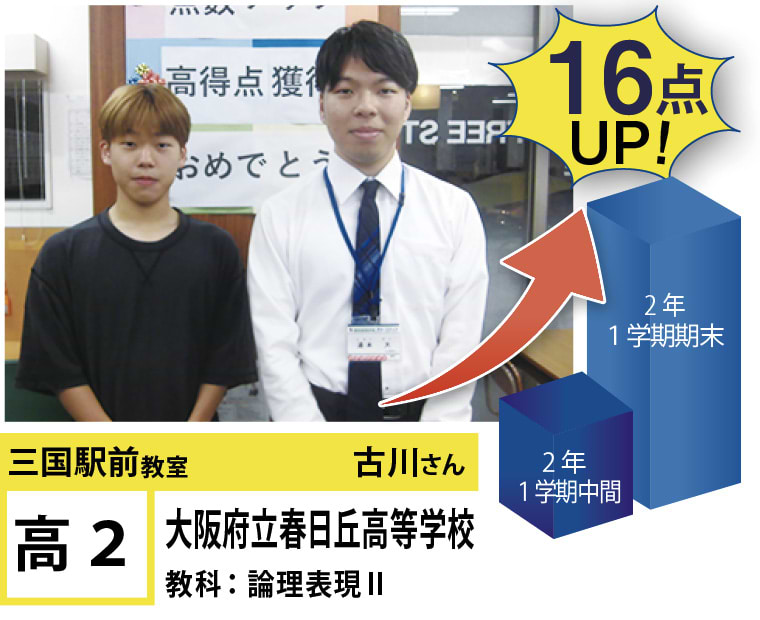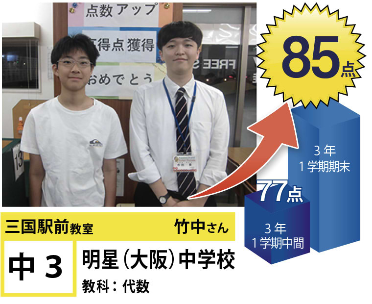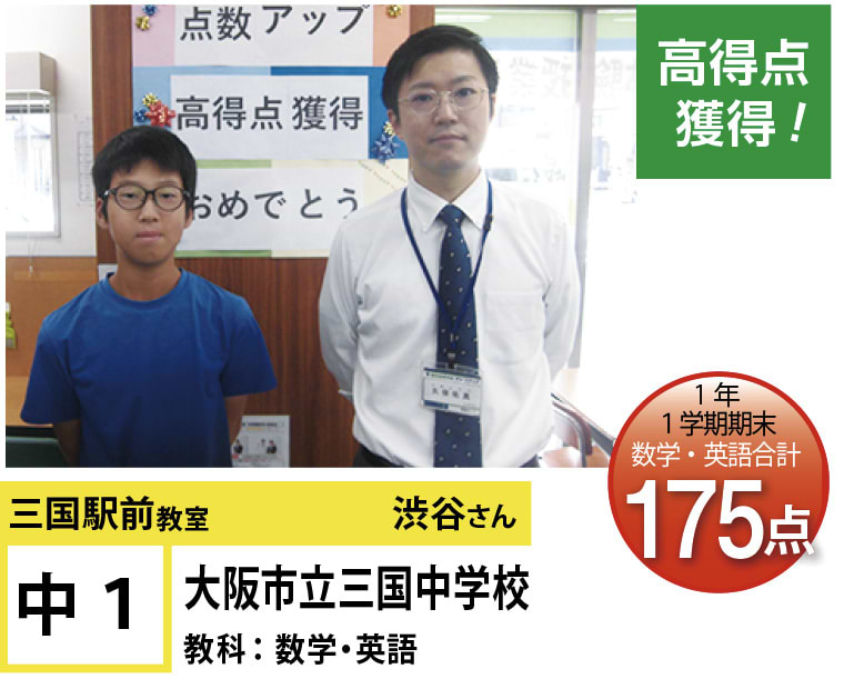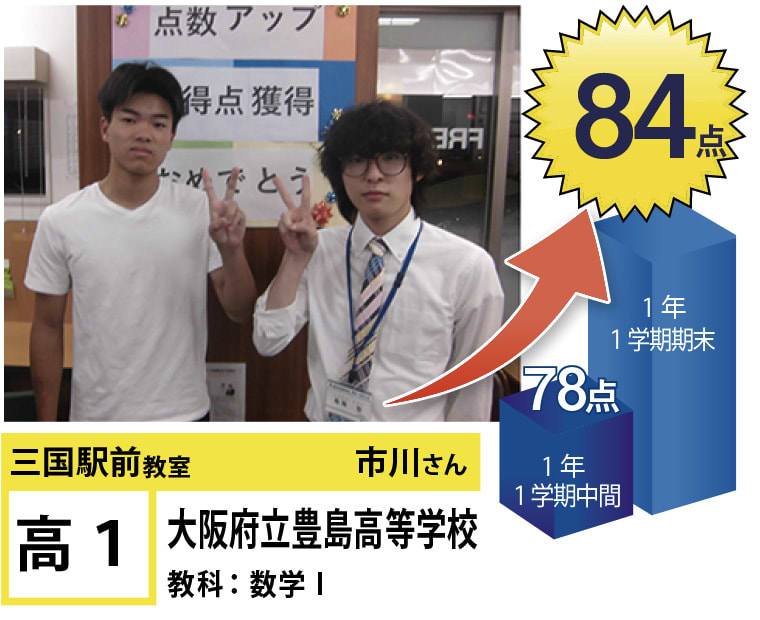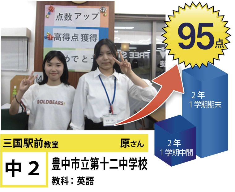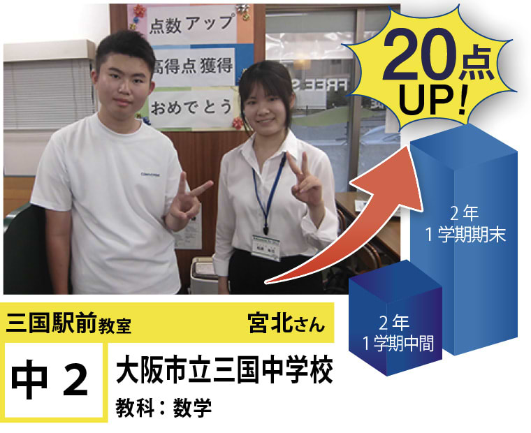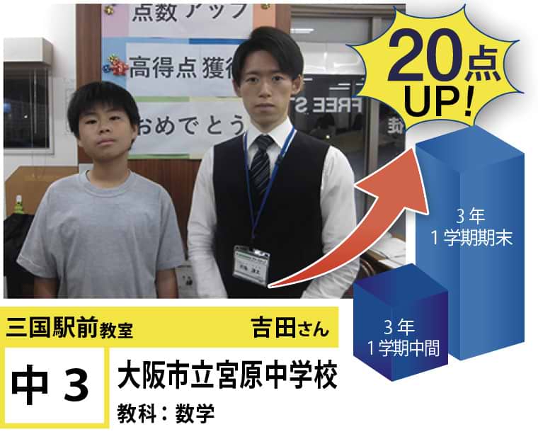 | 在籍生徒 | 小学校・・・新高小学校、三国小学校、宮原小学校、東三国小学校、野中小学校、千成小学校など 中学校・・・三国中学校、十三中学校、宮原中学校、咲くやこの花中学校、美津島中学校、梅花中学校など 高校・・・豊中高等学校、池田高等学校、春日丘高等学校、利根山高等学校、関西大学北陽学校、大阪学院高校など |