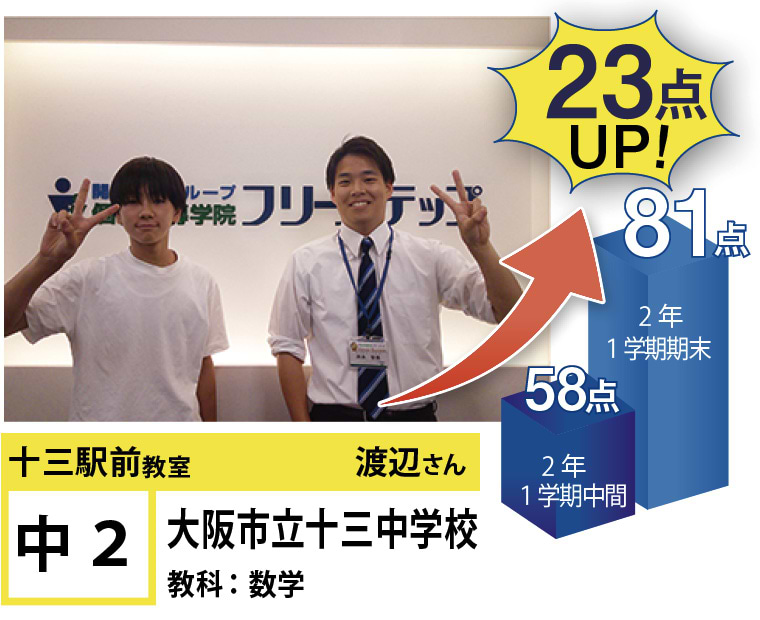 成績が上がらない、受験指導、学習習慣をつけたいなど、今後の学習計画などでご相談・ご要望のある方がいらっしゃいましたら、遠慮なくフリーステップ十三駅前教室までお問い合わせください。