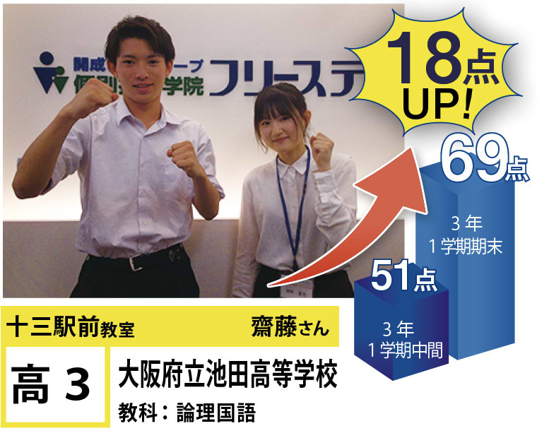 個別指導学院フリーステップ十三駅前教室は、皆様ひとりひとりの目標達成のために全力でサポートいたします。「点数アップと大学受験に強い個別指導」として、多数の実績を残しているフリーステップだからこそ、個人に応じたカリキュラムを設定し、優れた講師とシステムが点数アップと志望校合格に導きます。そのため効率よく学習ができ、計画的に進めることで成績向上を目指していくことが可能です。