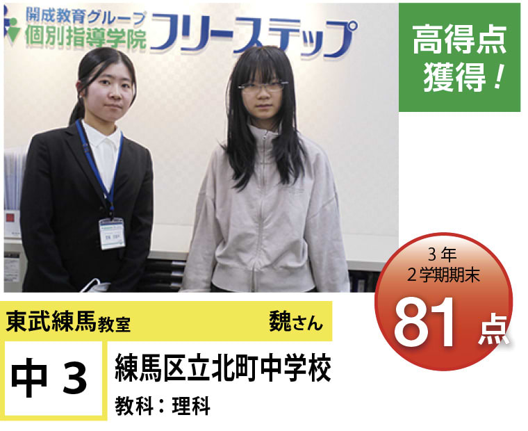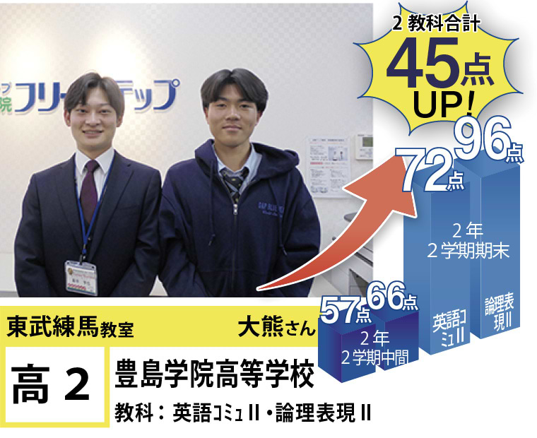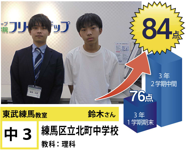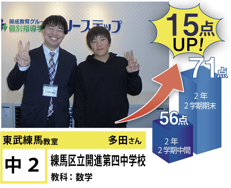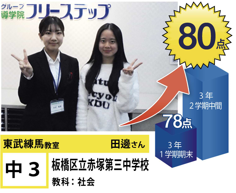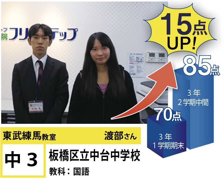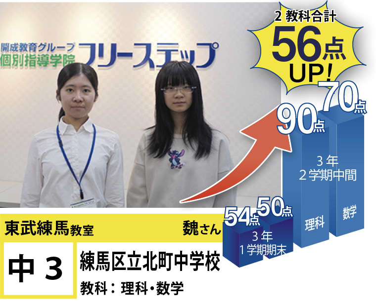 フリーステップ東武練馬教室は、東武東上線東武練馬駅近くにある教室です。私たちは、「点数アップ」と「大学受験」に強い個別指導塾としてこれまで多くの生徒の笑顔を創り出して参りました。