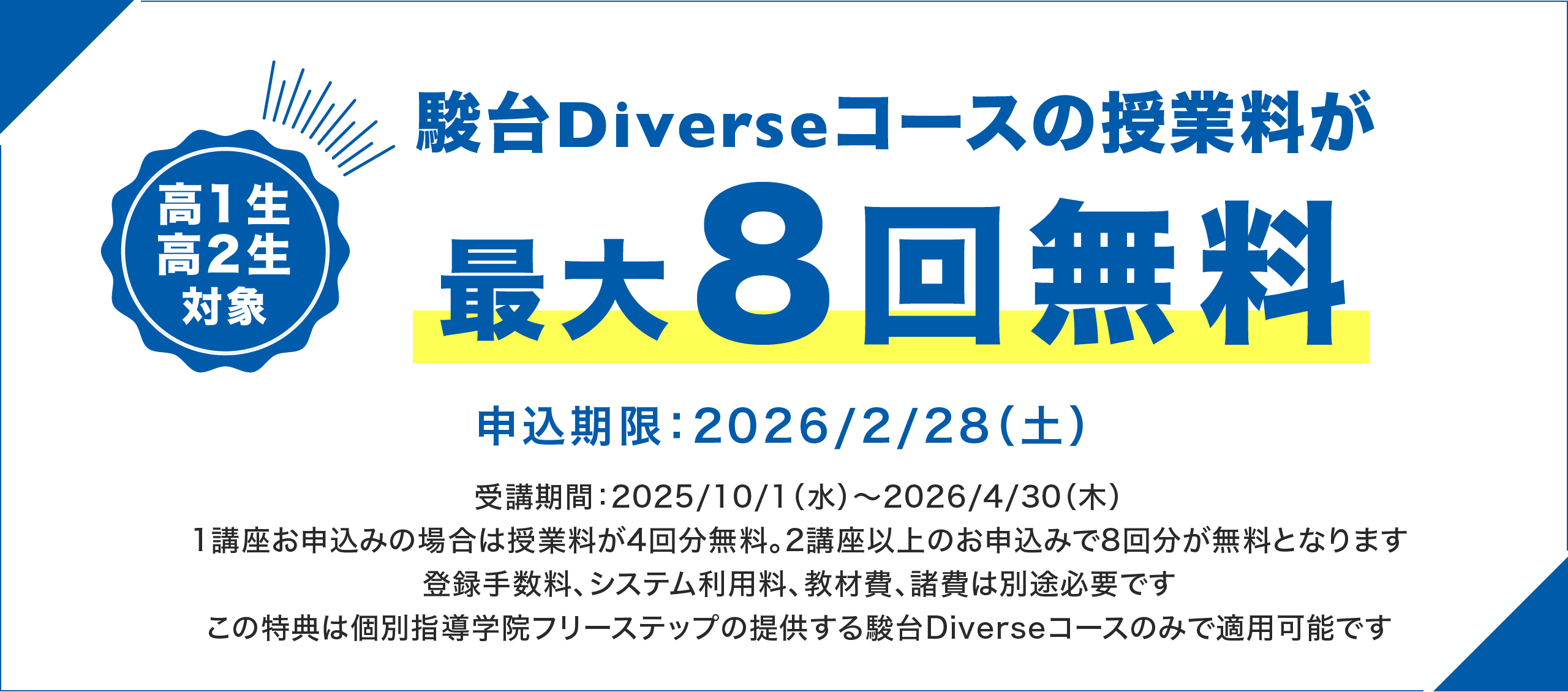 駿台ダイバースとの組み合わせで、受験に必要な全ての科目をカバーしています。