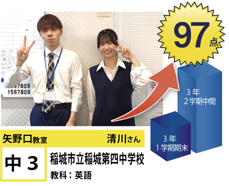 私自身の中で最も印象に残っている点数アップのエピソードは、英語が非常に苦手だった生徒がテストで点数アップを成し遂げたことです。