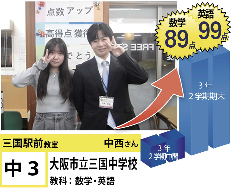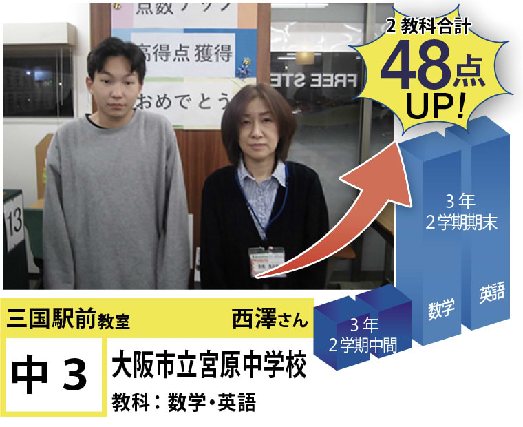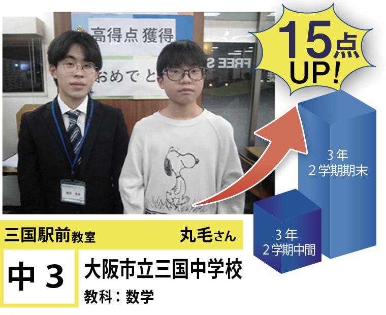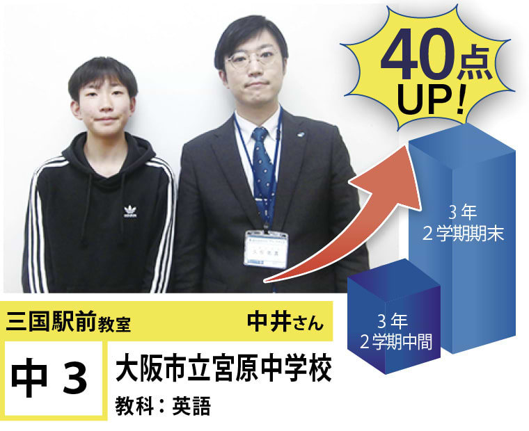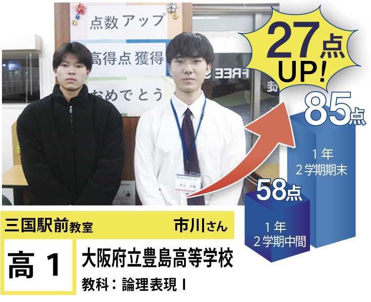| 在籍生徒 | 小学校・・・新高小学校、三国小学校、宮原小学校、東三国小学校、野中小学校、千成小学校など 中学校・・・三国中学校、十三中学校、宮原中学校、咲くやこの花中学校、美津島中学校、梅花中学校など 高校・・・豊中高等学校、池田高等学校、春日丘高等学校、利根山高等学校、関西大学北陽学校、大阪学院高校など |