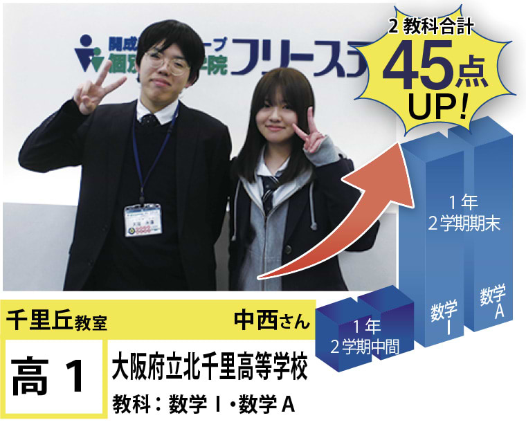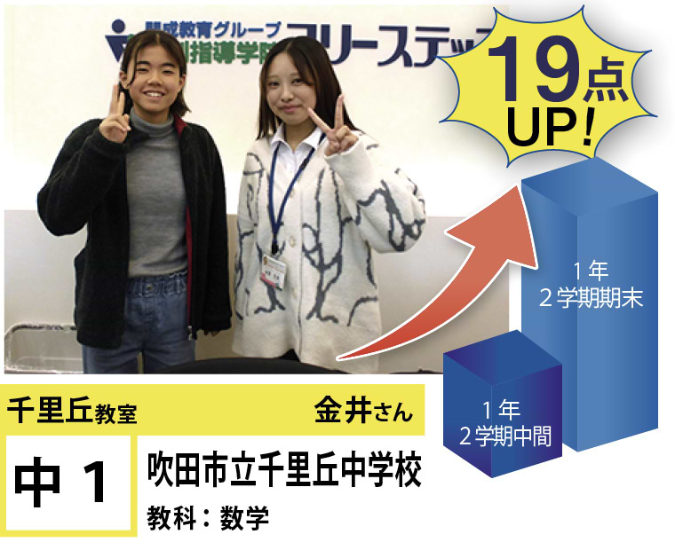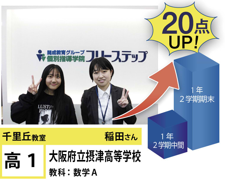 「志望校合格!」「点数UP!」はもちろん「授業が楽しくなりたい!」「楽に勉強したい!」そんな「夢」を叶えられる教室がフリーステップ千里丘教室です!