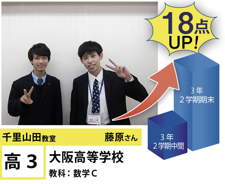 個別指導学院フリーステップ千里山田教室は、「点数アップに強い大学受験に強い個別指導」として、これまで多くの点数アップを実現しました。そのノウハウを活かし、千里山田教室では、「点数のあげ方がわからない」、「受験勉強に何をしていいかわからない」といったお悩みから、「学習習慣を身に着けたい」といったお悩みまで、解決に向けてサポートさせていただきます。