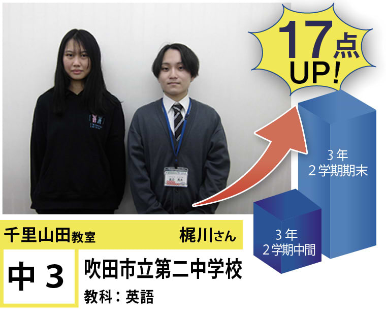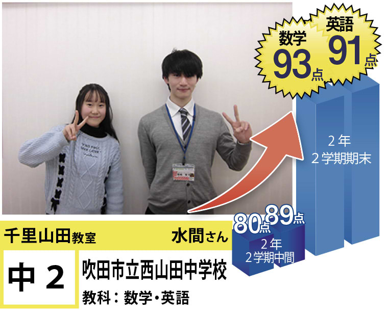 千里山田教室では一人一人に最適なカリキュラムを提案し、目標達成に向けて学習を進めていますので、計画的に学力向上が目指すことが可能です。