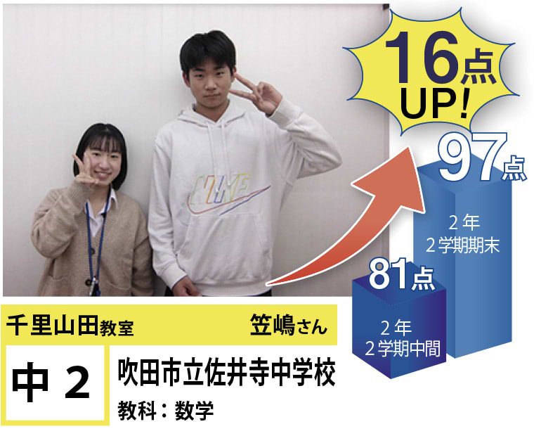 苦手分野の克服、受験指導、学習方法など、今後の学習計画などでご相談・ご要望のある方がいらっしゃいましたら、遠慮なく千里山田教室までお問い合わせください。