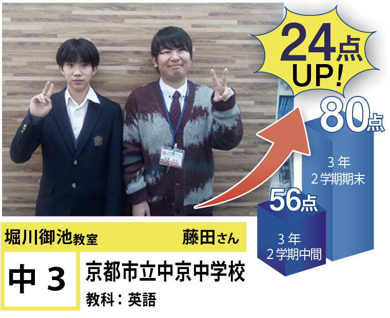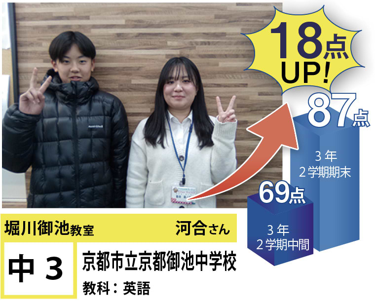 フリーステップ堀川御池教室は、目の前のテストの点数だけではなく、将来の夢を実現するための活動を一緒になって取り組みます。そのために、大学受験、高校受験、中学受験は当然のことながら、日々の学校の学習、定期テストの点数アップのお手伝いもさせていただいていています。