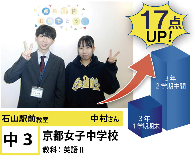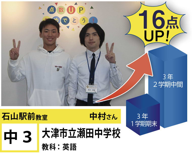 | 在籍生徒 | 小学校・・・田上小学校、瀬田南小学校、膳所小学校など 中学校・・・粟津中学校、瀬田中学校、石山中学校、南郷中学校、打出中学校、北大路中学校など 高校・・・東大津高等学校、石山高等学校、膳所高等学校、比叡山高等学校、京都女子高等学校、京都聖母学院高等学校など |