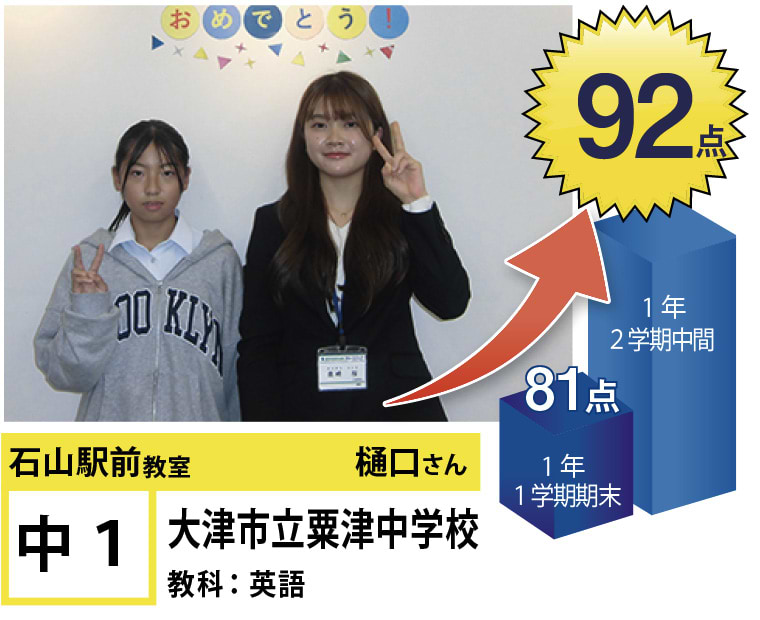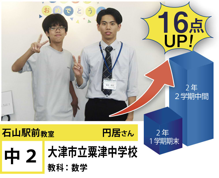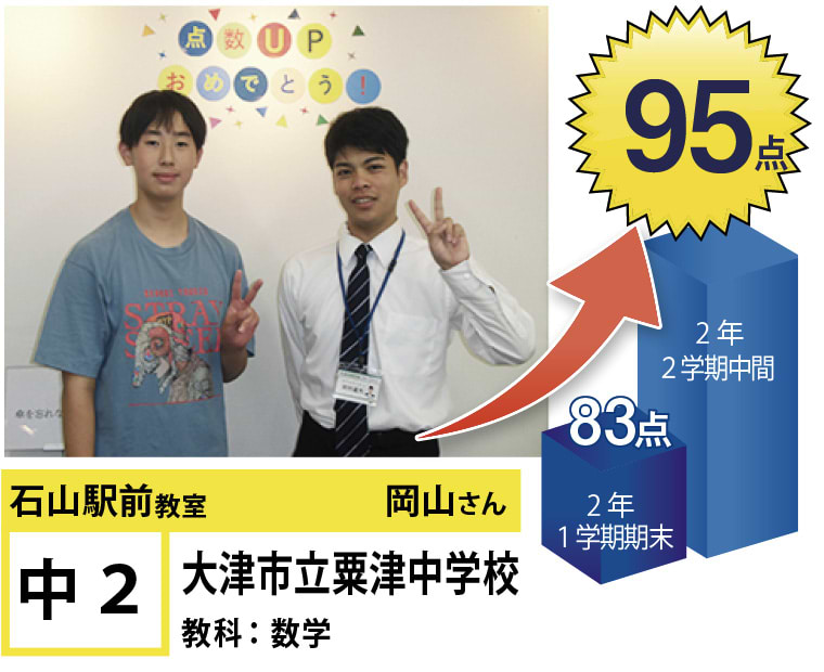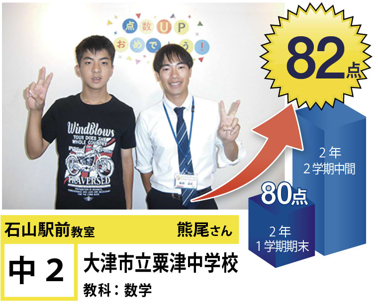 また石山駅前教室はお子様の目標までの過程に特に目を向けております。目標までの過程が充実していれば、自ずと目標を達成することができます。目標達成のために、お子様に合った学習カリキュラムで授業を進めていきます。そして目標までの過程に真摯に向き合い、何かを頑張ることができる生徒さんを増やしていきます。そのために、教室管理者と講師陣は責任感を持ち、誠心誠意日々の授業に向き合っております。