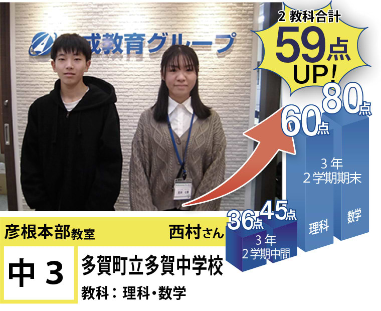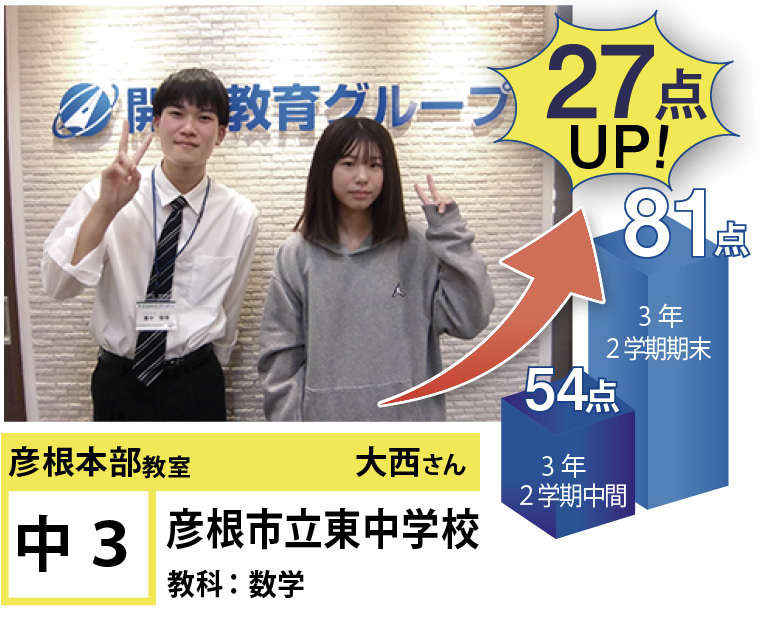 | 在籍生徒 | 小学校・・・城東小学校、城西小学校、佐和山小学校など 中学校・・・彦根東中学校、彦根西中学校、鳥居本中学校など 高校・・・彦根東高等学校、米原高等学校、河瀬高等学校、彦根翔西館高等学校、長浜北高等学校など |