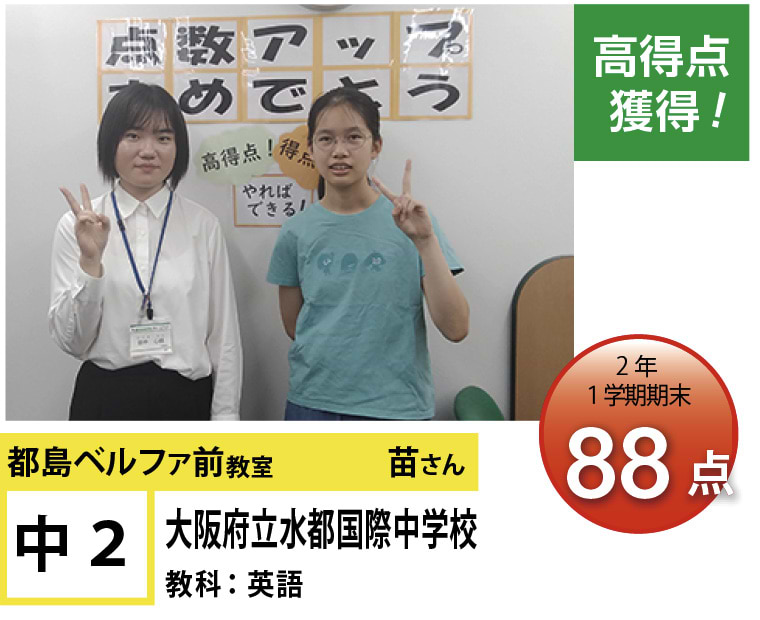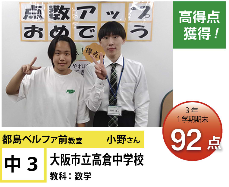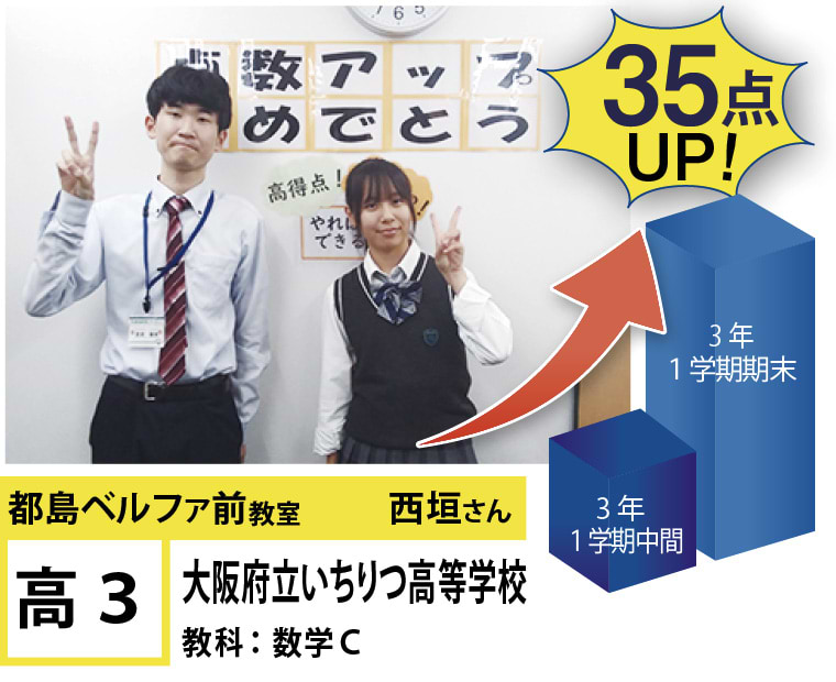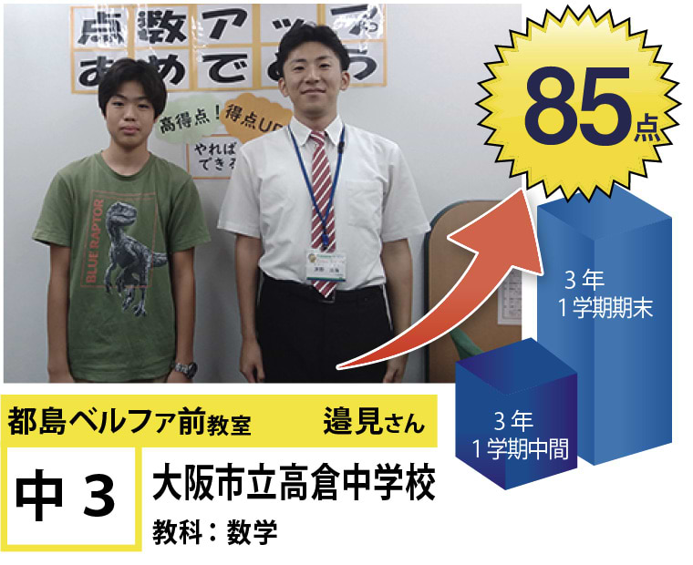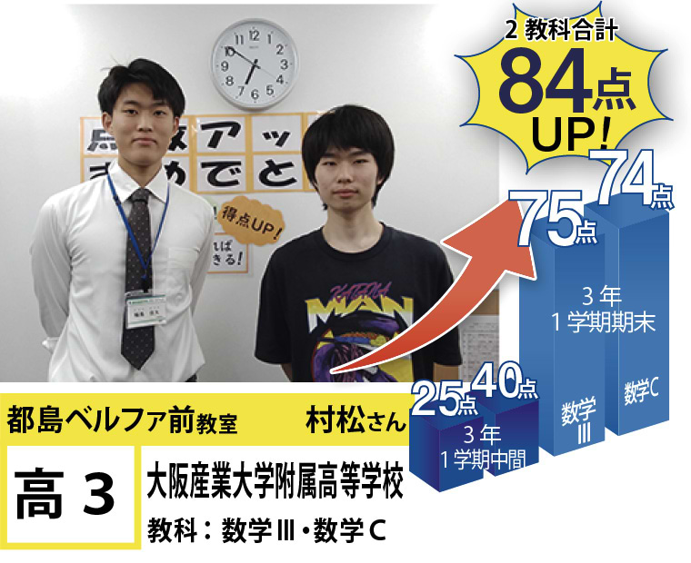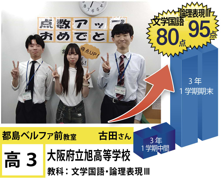 | 在籍生徒 | 小学校・・・高倉小学校、友渕小学校、東都島小学校、高殿小学校など 中学校・・・友渕中学生、高倉中学校、旭陽中学校、大阪信愛学院中学校、水都国際中学校、咲くやこの花中学校など 高校・・・四條畷高校、寝屋川高校、東高校、旭高校、常翔学園高校、近畿大学付属高校など |