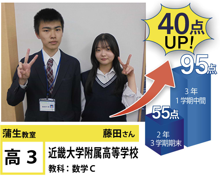フリーステップ蒲生教室は、生徒のみなさん一人ひとりの目標に沿った教務指導と進路指導で、これまで多くの成績向上、志望校合格を実現してまいりました!