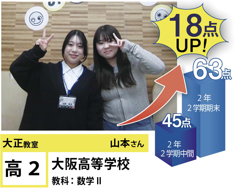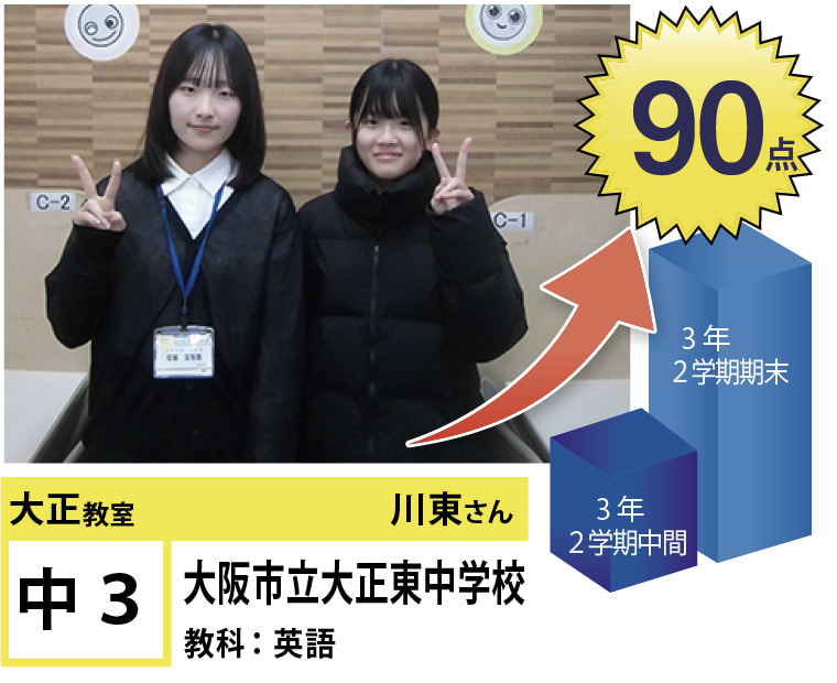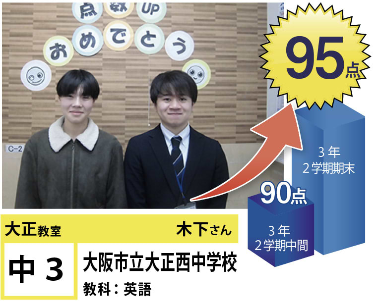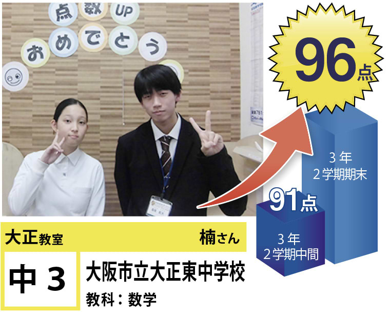 | 在籍生徒 | 小学校・・・三軒家東小学校、大阪市立三軒家西小学校、中泉尾小学校、泉尾北小学校、塩草立葉小学校、北恩加島小学校など 中学校・・・大正東中学校、大正北中学校、大正西中学校、咲くやこの花中学校、水都国際中学校、桃山学園中学校など 高校・・・市岡高等学校、東高等学校、夕陽丘高等学校、立命館高等学校、水都国際高等学校など |