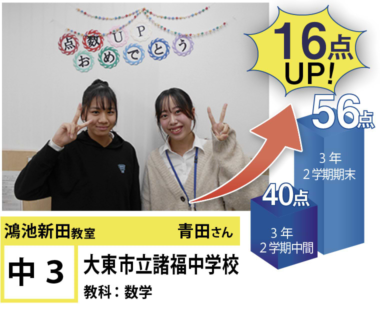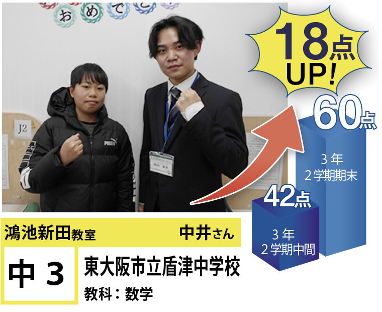 また、勉強を通じて目標を達成することによって、努力をすることの楽しさを知ってもらえたらと思っています!苦手科目の克服、学習習慣をつけたい、志望校合格などの目標に向けて、何かお困りなことがあれば、ぜひ一度フリーステップ鴻池新田教室にお越しください! 正しい努力をすれば目標は達成できます!一緒に頑張りましょう!