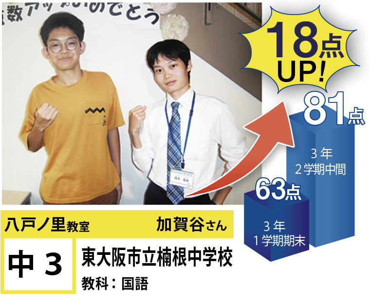 フリーステップ八戸ノ里教室では、生徒一人ひとりに合わせた指導を行っております。定期テストに向けての対策だけではなく、中学受験・高校受験・大学受験・英検対策など様々な対策をさせていただいておりますので、どの学年であってもご協力させていただいております。成績向上や志望校合格など学習の進め方はそれぞれ異なりますが、フリーステップではそれぞれの目標や学力に合わせた学習プランをご提案させていただいております。