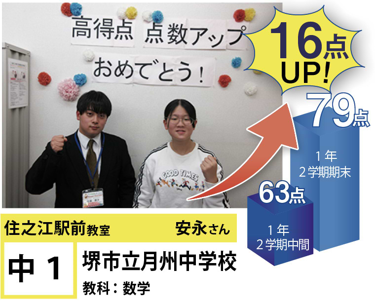 フリーステップ住之江駅前教室は「点数アップと大学受験に強い教室」として、多くの点数アップを実現しました。そのノウハウを活かして、通塾いただく方々の「夢の実現」のお手伝いをさせていただきます。定期テストや受験対策など、一人ひとりに最適なカリキュラムを設定し、勉強がどこまで進んでいるかを把握し、授業を展開することができます。また、テスト前には直前対策ゼミを行うことで目標点達成に向けて効率的かつ計画的に学力向上を目指すことが可能です。