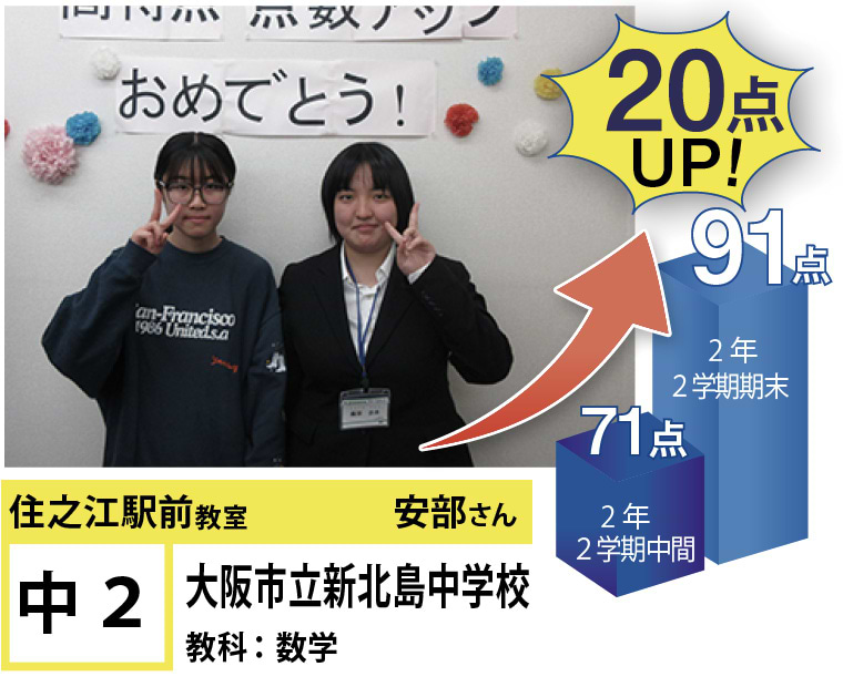 | 在籍生徒 | 小学校・・・墨江小学校、清江小学校、安立小学校など 中学校・・・住之江中学校、墨江丘中学校、真住中学校、水都国際中学校など 高校・・・水都国際高等学校、浪速高等学校、住吉高等学校、桃山学院高等学校、阿倍野高等学校、偕星学園高等学校など |