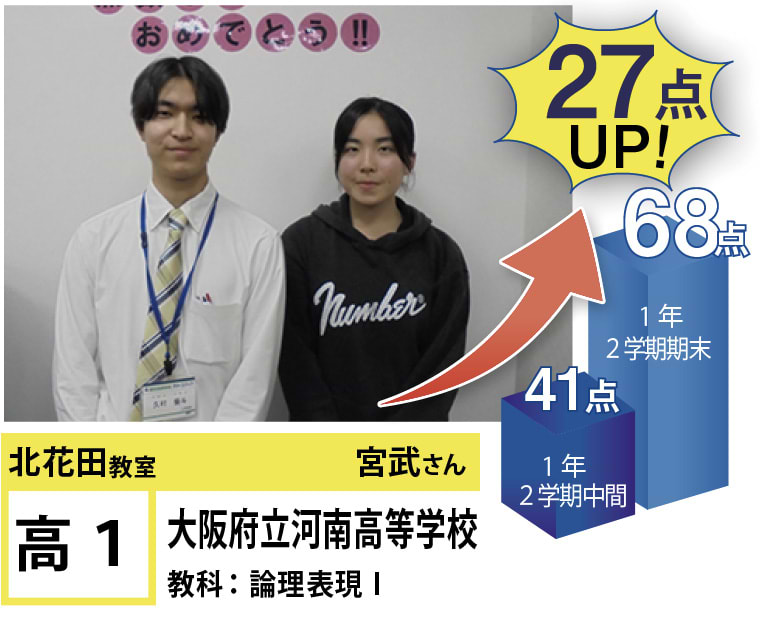 | 在籍生徒 | 小学校・・・五箇荘東小学校、天美西小学校 など 中学校・・・長尾中学校、松原第五中学校、五個荘中学校、大阪国際中学校、水都国際中学校 など 高校・・・阪南高等学校、泉陽高等学校、阿倍野高等学校、浪速高等学校、上宮高等学校 など |
