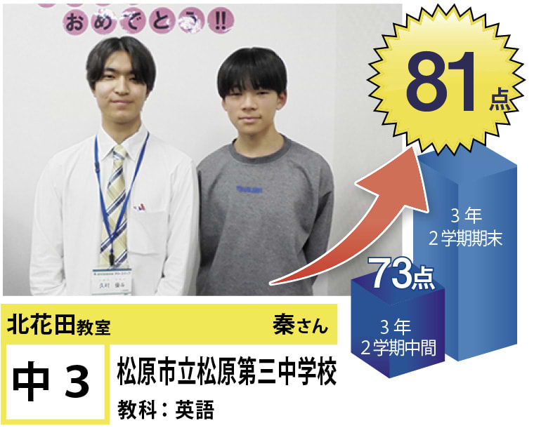 一人一人に丁寧なフォローを行い、水準の高い授業を提供することで少しでも成績を上げ、『できた!』を増やし、やっていてよかったとなれるようにすることが最大の目標です。