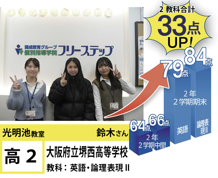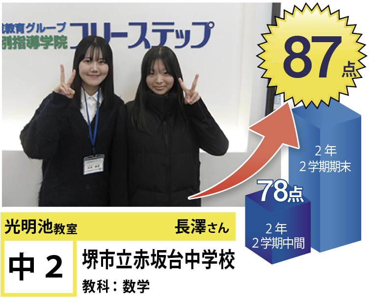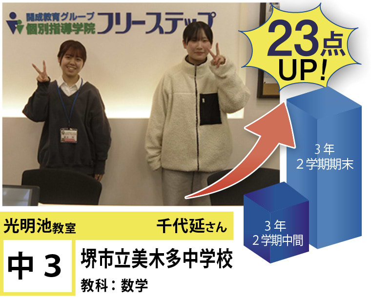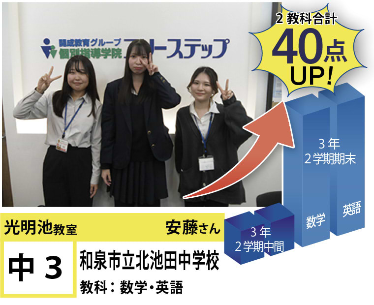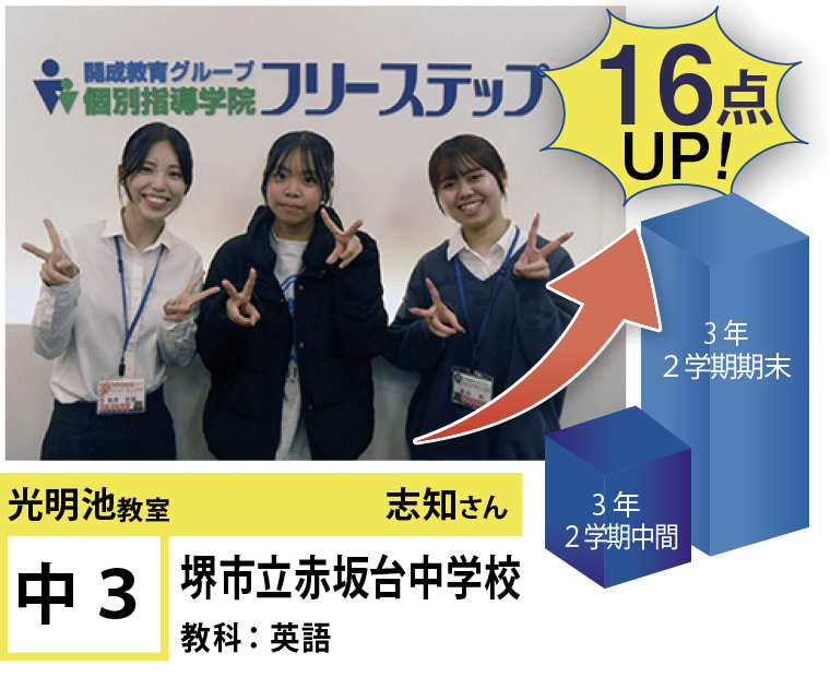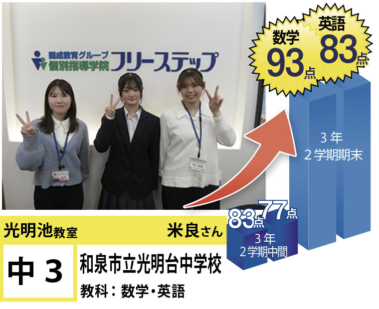 私たちは、20年以上の間、光明池に住むみなさんの点数アップと志望校合格を実現してきました。そして、フリーステップで志望校合格を実現させた元生徒が、今度は講師として点数アップと志望校合格を実現させています。この好循環を生み出せているのは、地域の皆様のお陰だと思っております。
