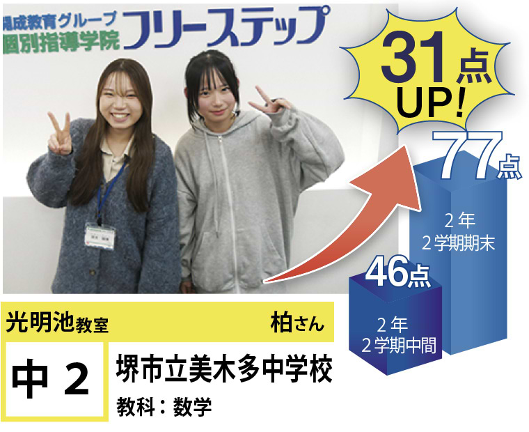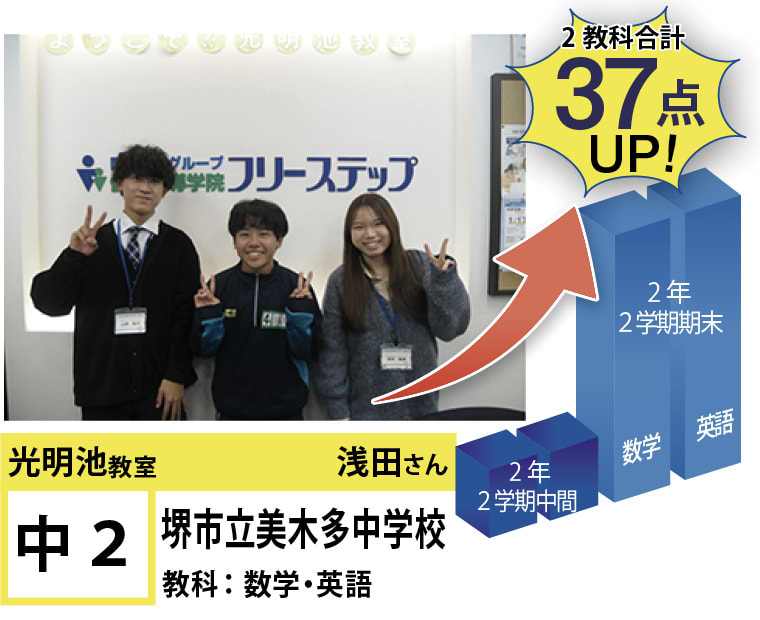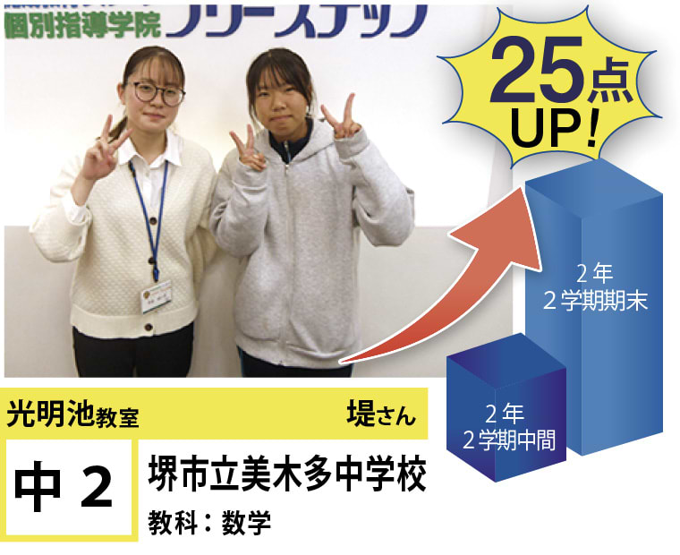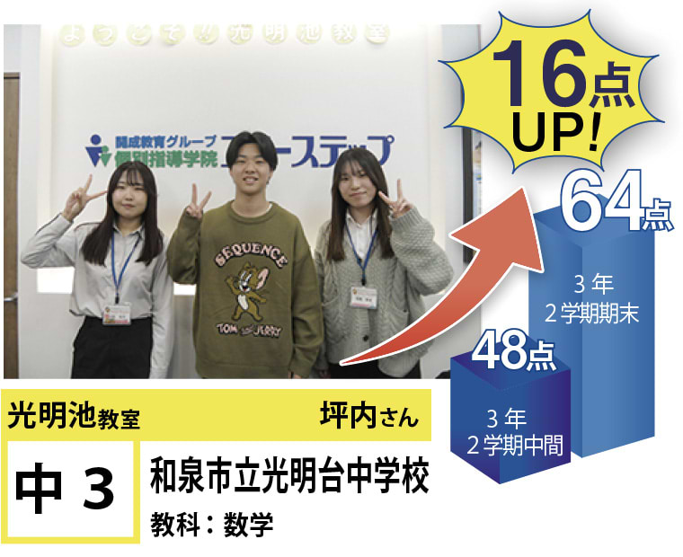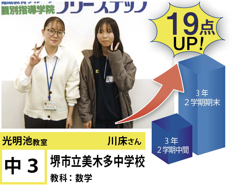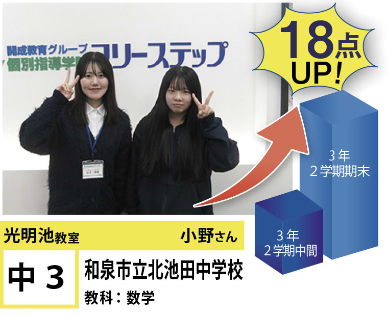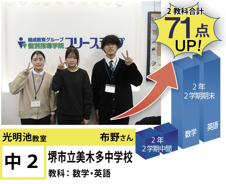 私たちは、20年以上の間、光明池に住むみなさんの点数アップと志望校合格を実現してきました。そして、フリーステップで志望校合格を実現させた元生徒が、今度は講師として点数アップと志望校合格を実現させています。この好循環を生み出せているのは、地域の皆様のお陰だと思っております。