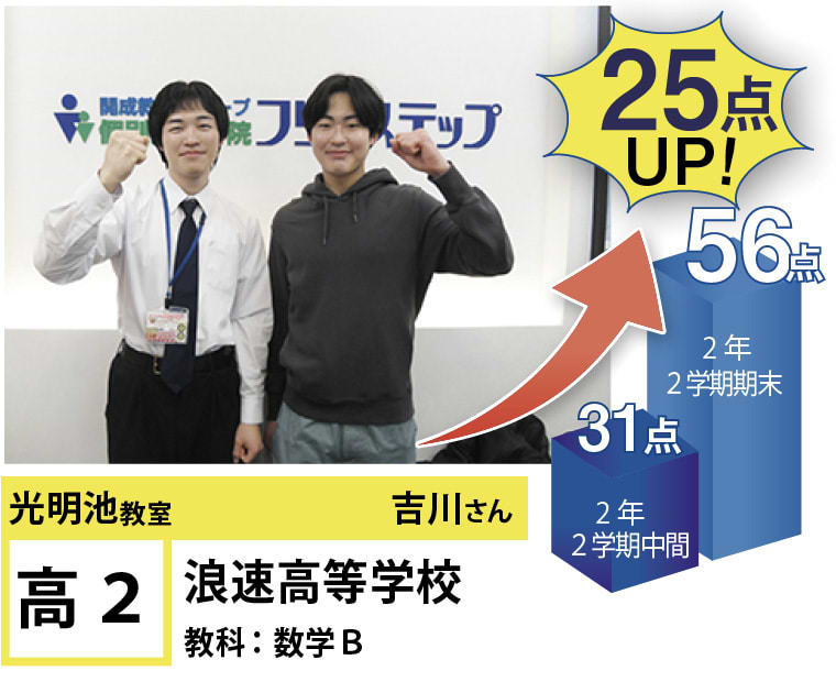 光明池を知り尽くしているという人の力だけではなく、フリーステップには「S-CUBE」「My Step Log」といった学習システムの力、「WAY TO GO!」といった進路指導の力もあります。これが一体となって、点数アップや志望校合格などの成果が生まれているのです。