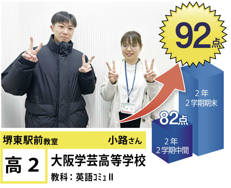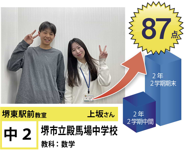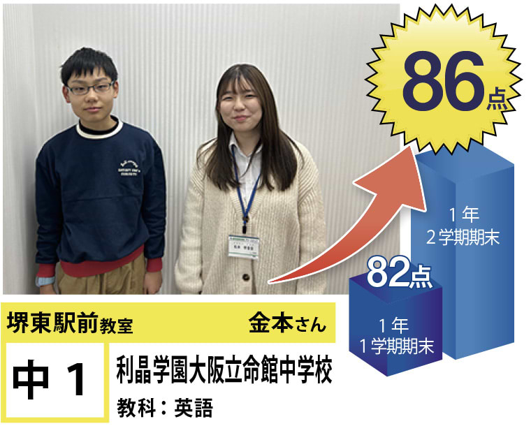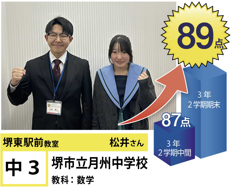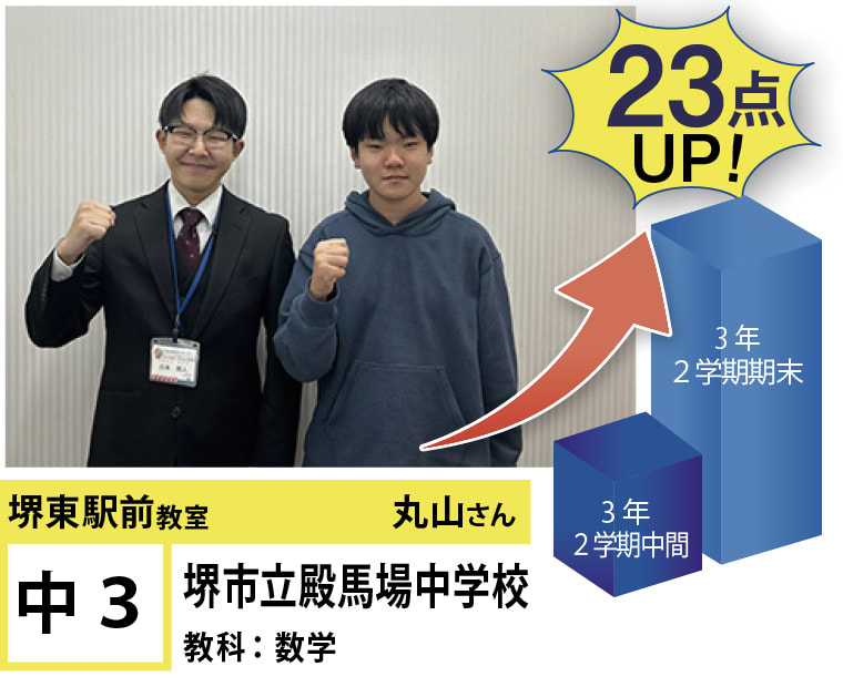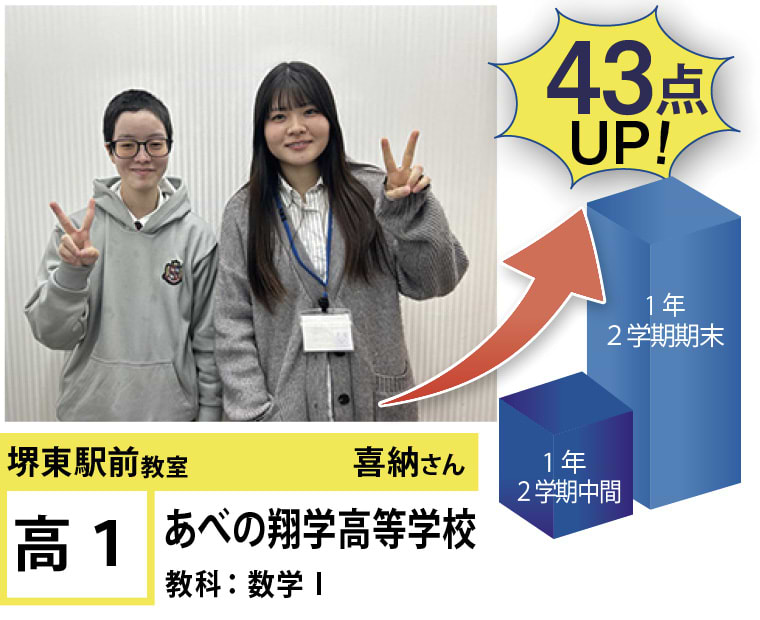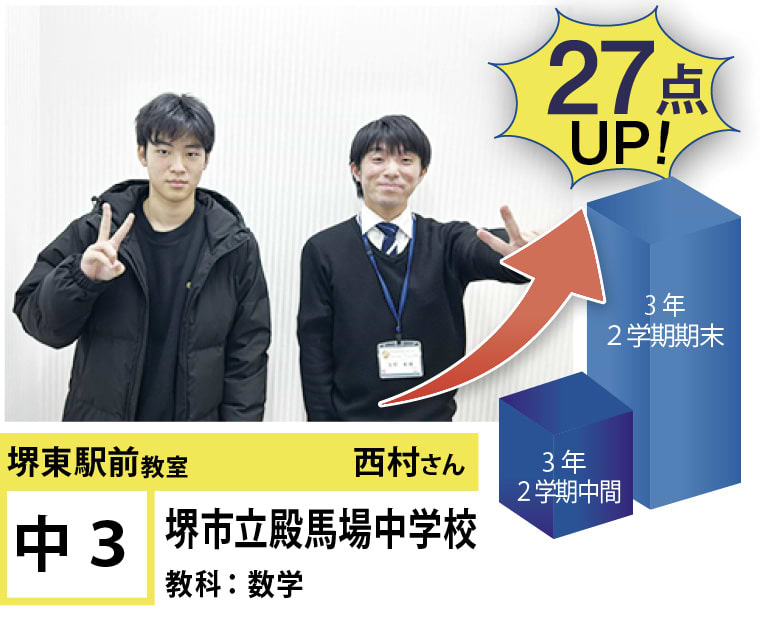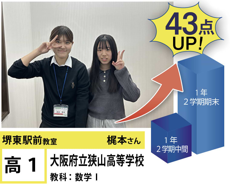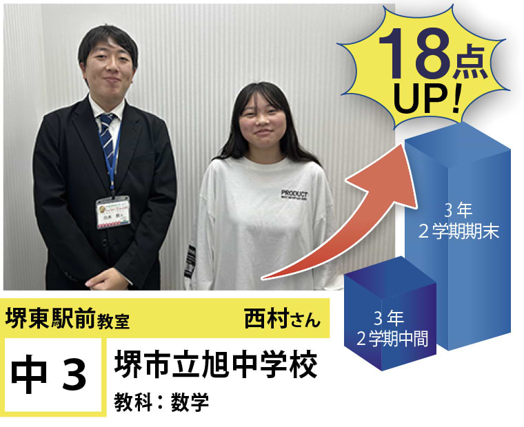 堺東駅前教室は“合格力”を上げるための「最短の道筋」と「学びの加速」につなげる「モチベーションアップ」が叶う教室です。“在籍30名超 “ のコミュニケーション力・指導力の高い講師陣・教室チーフが生徒の心に寄り添い、幅広い知識を生かして全力サポートします。公立高校入試に必須となるのが「内申」、結果が出せるFS独自の強みは、蓄積されたデータ。定期テスト対策を行い、結果においても個々の答案分析を行うことで苦手な分野や癖を把握し、基礎力錬成につなげます。