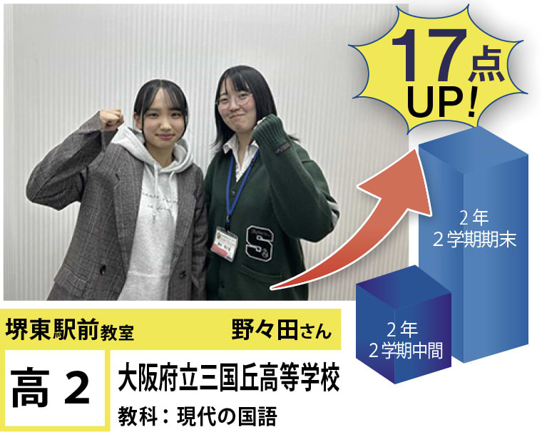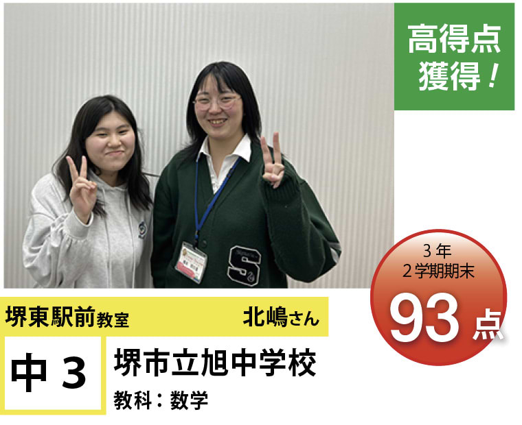 | 在籍生徒 | 小学校・・・三国丘小学校、榎小学校、熊野小学校、錦小学校、安井小学校、大仙西小学校 など 中学校・・・三国丘中学校、殿馬場中学校、月洲中学校、旭中学校、浅香山中学校、陵西中学校 など 高校・・・三国丘高校、泉陽高校、登美丘高校、清教学園高校、浪速高校、大阪学芸高校 など |
