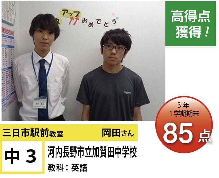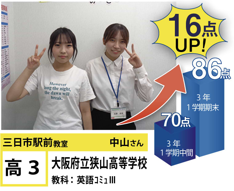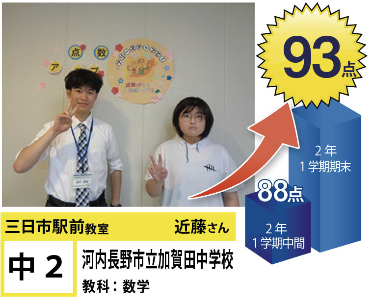 | 在籍生徒 | 小学校・・・三日市小学校、加賀田小学校、美加の台小学校、南花台小学校 など 中学校・・・東中学校、加賀田中学校、美加の台中学校、南花台中学校、長野中学校 など 高校・・・富田林高校、河南高校、狭山高校、金剛高校、長野高校、初芝富田林高校 など |