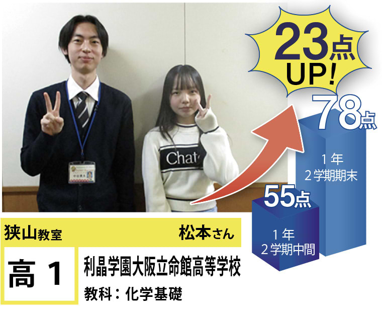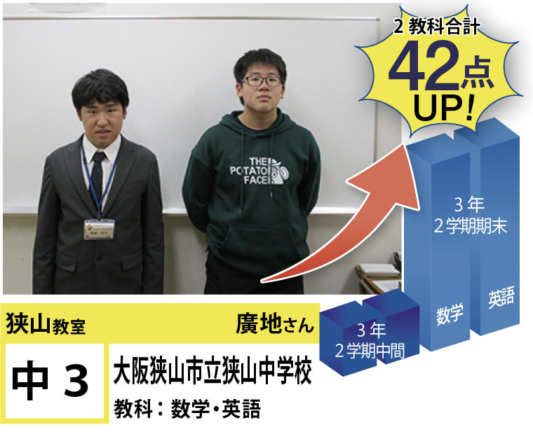 | 在籍生徒 | 小学校・・・東小学校、北小学校、藤沢台小学校、久野喜台小学校、平尾小学校、はつしば学園小学校など 中学校・・・狭山中学校、葛城中学校、南中学校、藤陽中学校、富田林中学校、利晶学園大阪立命館中学校など 高校・・・三国丘高校、富田林高校、泉北高校、狭山高校、利晶学園大阪立命館高校、清教学園高校など |