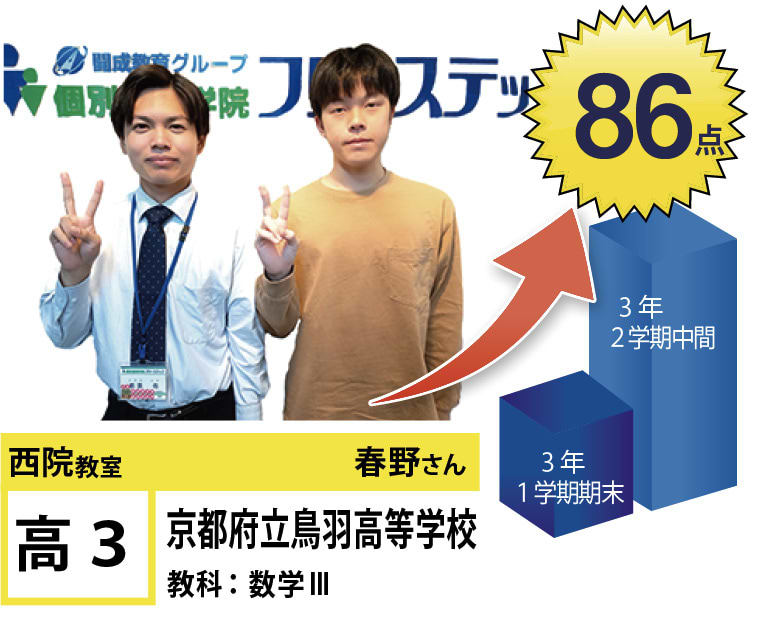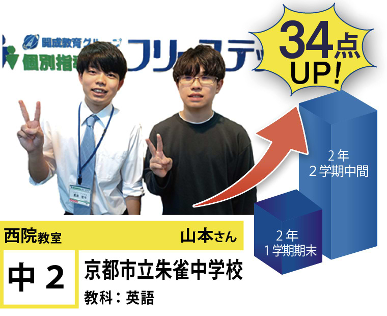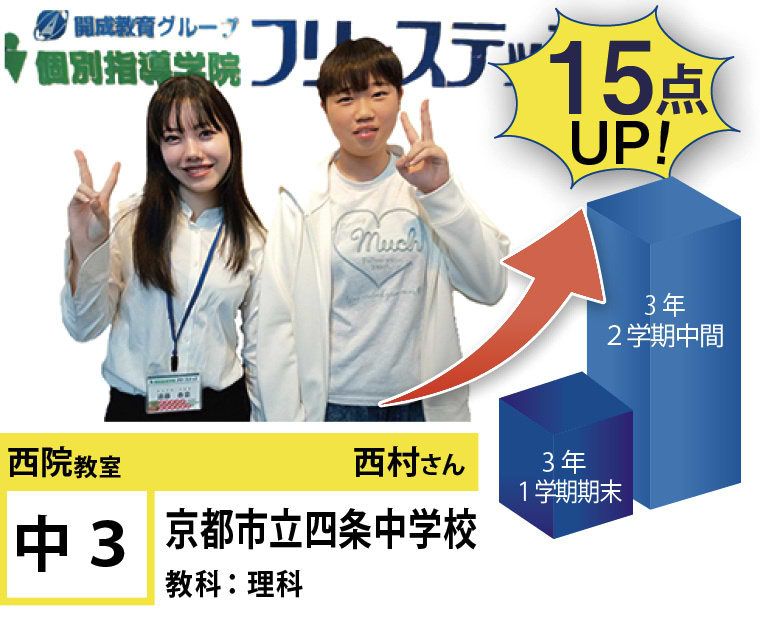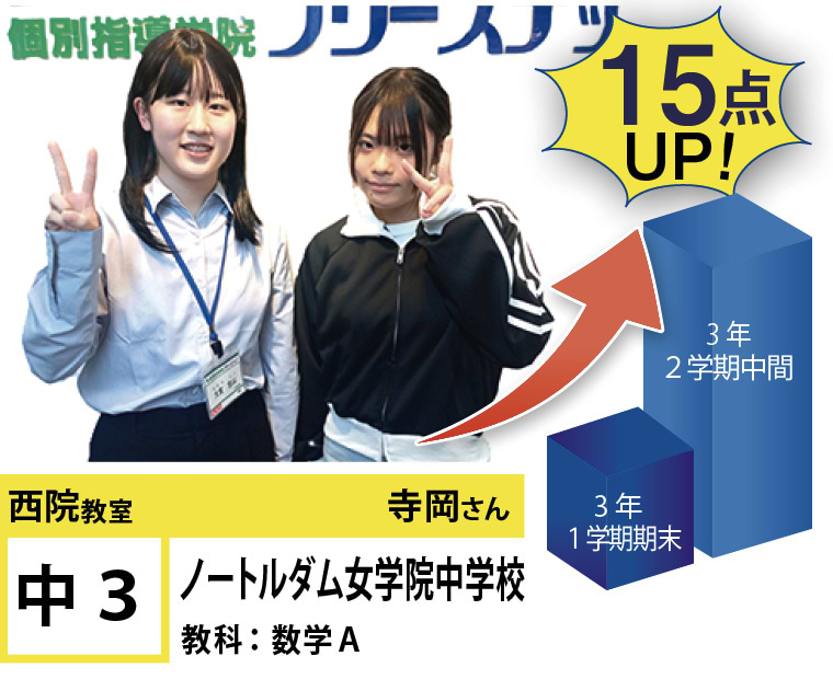 西院教室では、「講師」「成果」「教室環境」に重きを置き、それぞれのお子様の「点数up」と「合格」にこだわる指導と仕組みづくりをしております。西院教室は、全国約260教室の中で点数up部門4年連続「優秀教室」に選ばれ、昨年度は点数up全国1位を獲得し、今年度も順調に実績を伸ばしております。
