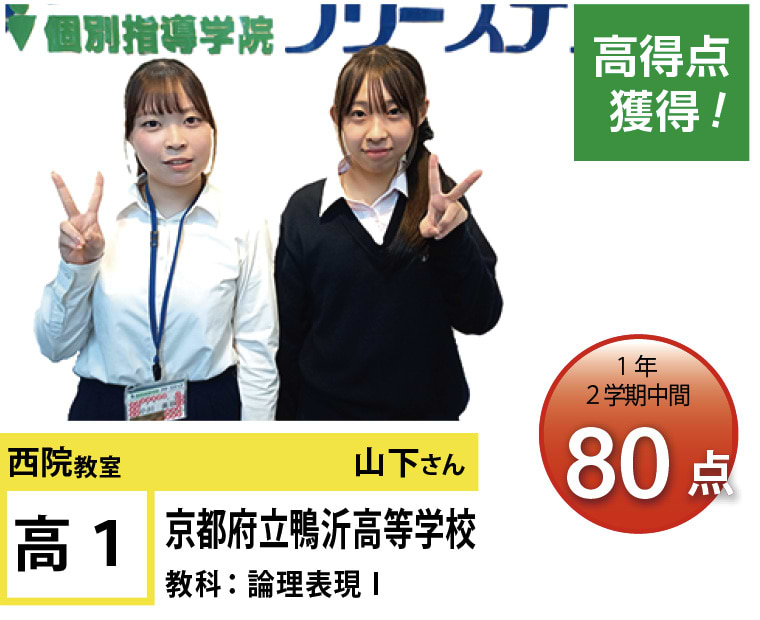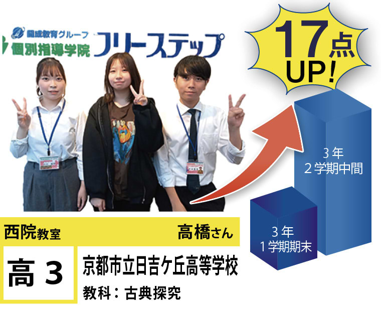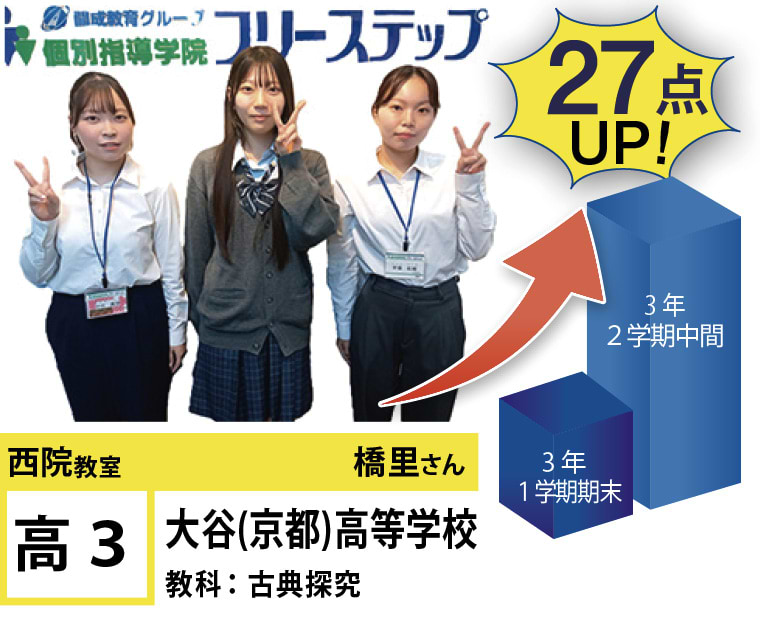 | 在籍生徒 | 小学校・・・西院小学校、朱雀第七小学校、朱雀第四小学校、山ノ内小学校 中学校・・・西院中学校、朱雀中学校、四条中学校、西ノ京中学校、立命館中学校、ノートルダム女学院中学校 など 高校・・・西京高校、嵯峨野高校、山城高校、鳥羽高校、開建高校、花園高校、立命館高校、京都産業大附属高校 など |