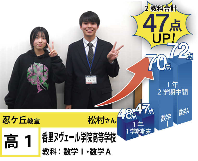 忍ケ丘教室一同は皆明るく元気がいいスタッフばかりで、生徒の気持ちに寄り添った指導が可能です。
