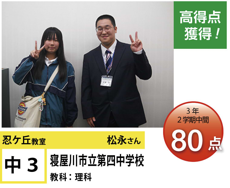 | 在籍生徒 | 小学校・・・四條畷小学校、四條畷市立岡部小学校、四條畷市立田原小学校、忍ケ丘小学校など 中学校・・・四條畷中学校、四條畷西中学校、第四中学校など 高校・・・枚方高等学校、交野高等学校、北かわち皐ケ丘高等学校、桜ノ宮高等学校、常翔啓光学園高等学校、香里ヌヴェール学院高等学校など |