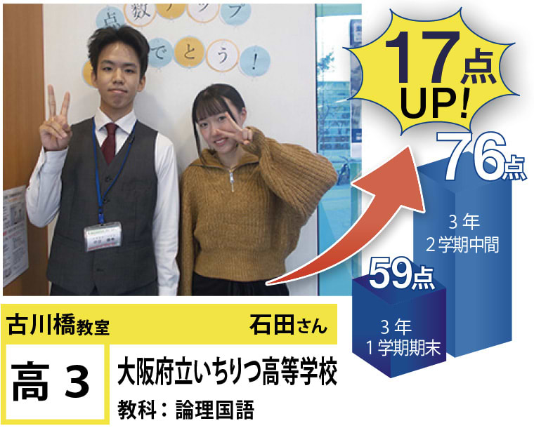 | 在籍生徒 | 小学校・・・速見小学校、沖小学校、脇田小学校、五月田小学校など 中学校・・・第二中学校、第三中学校、七中学校、梶中学校、門真はすはな中学校、大阪国際中学校など 高校・・・寝屋川高校、東高校、市岡高校、山田高校、東海大仰星付属高校、近畿大学附属高校など |