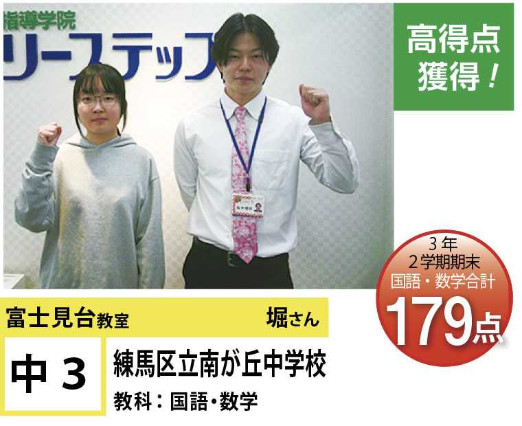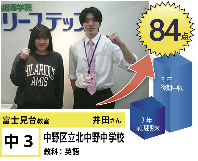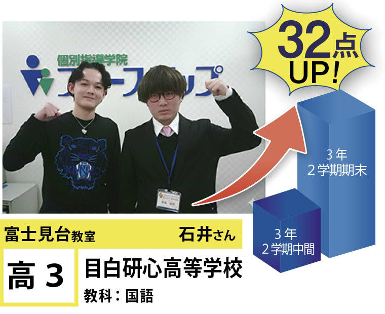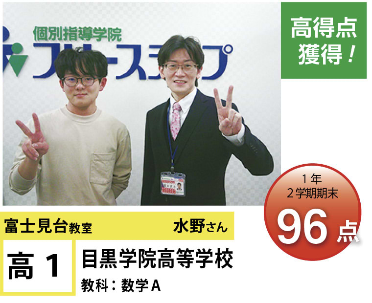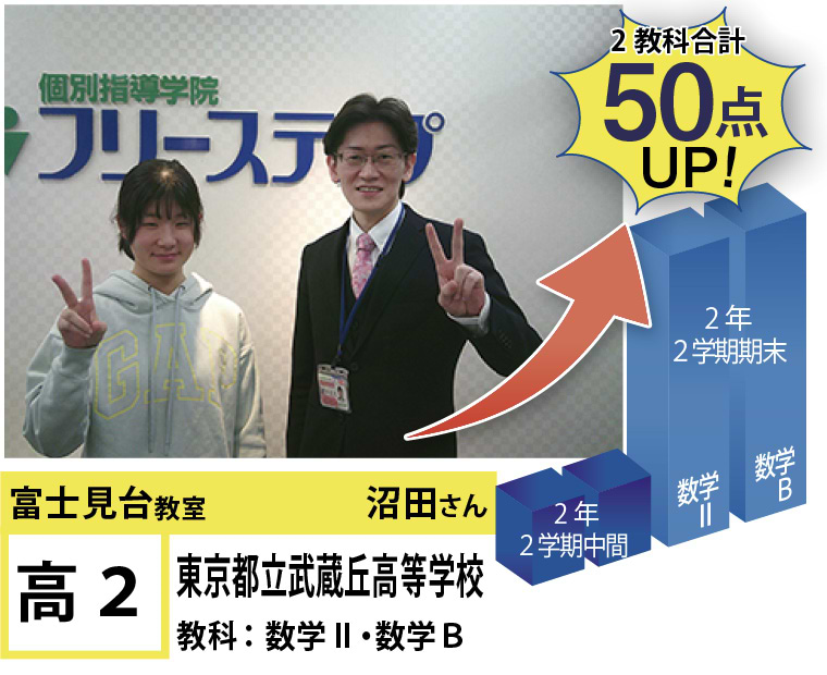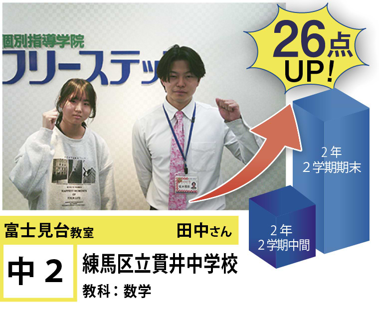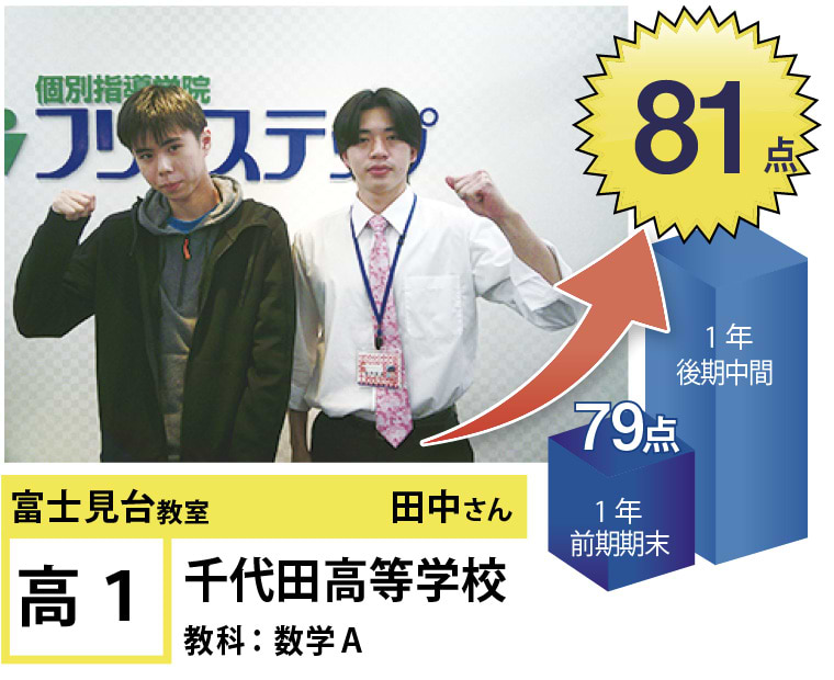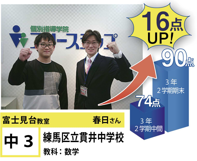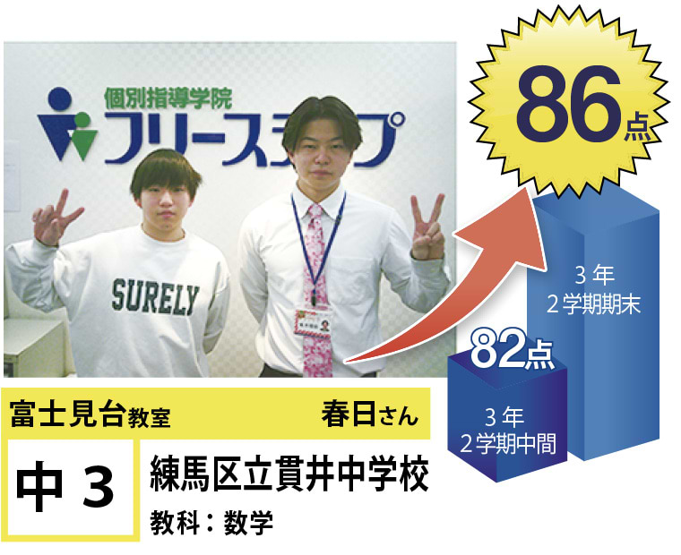 富士見台教室は『第1志望校合格』と『定期試験の点数アップ』で毎年優秀な結果を残しています。
