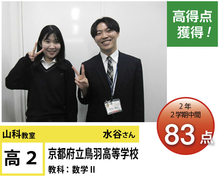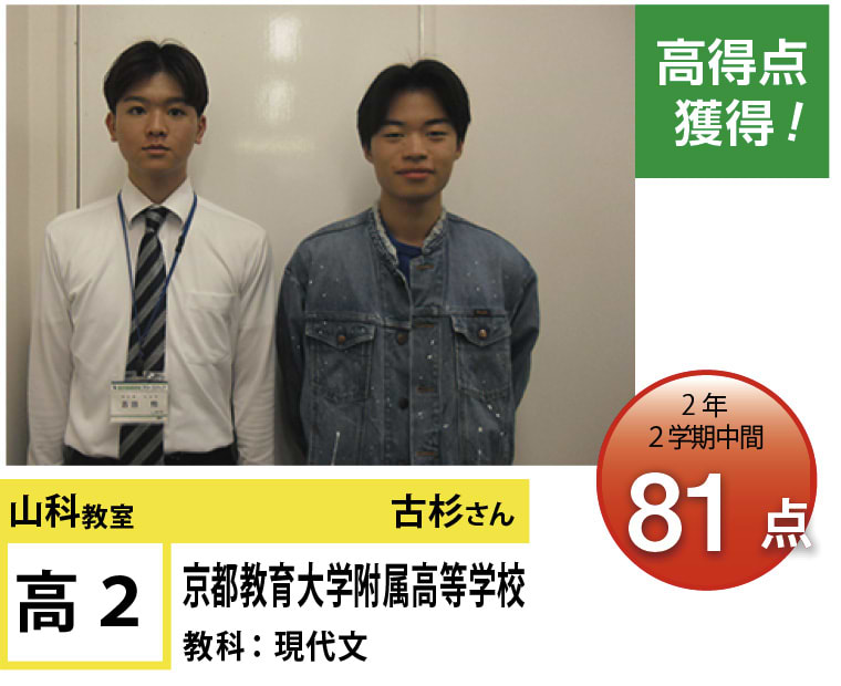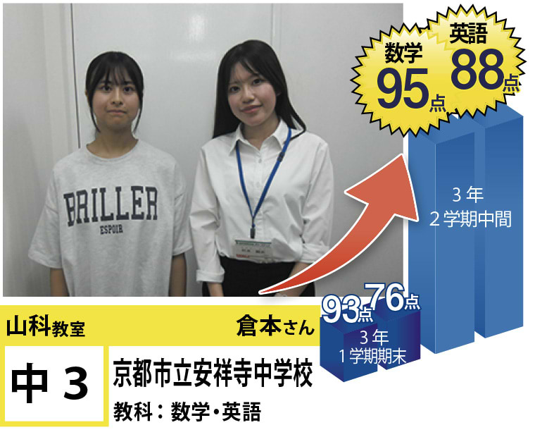 | 在籍生徒 | 小学校・・・安朱小学校、鏡山小学校、山階小学校、陵ヶ岡小学校、立命館小学校、京都女子大学附属小学校など 中学校・・・安祥寺中学校、花山中学校、音羽中学校、京都教育大学附属京都中学校、同志社中学校、大谷(京都)中学校など 高校・・・山城高等学校、紫野高等学校、鴨沂高等学校、東陵高等学校、同志社高等学校、京都産業大学附属高等学校など |