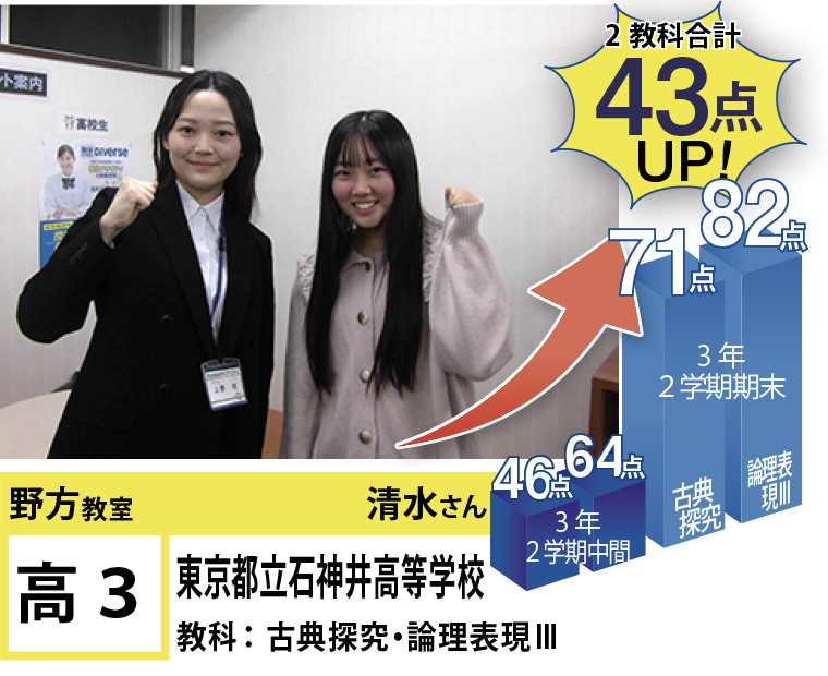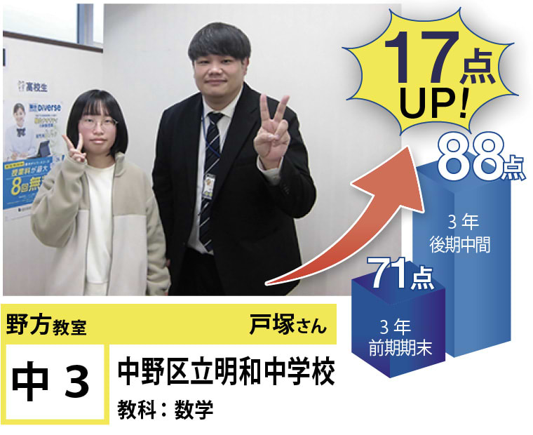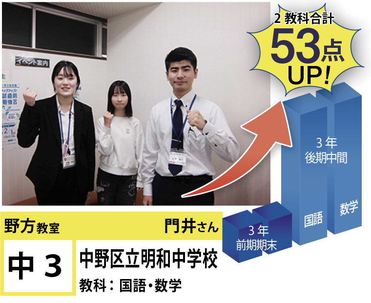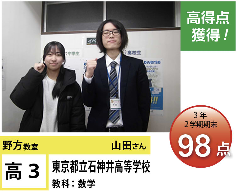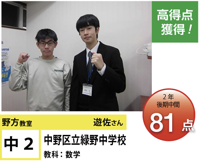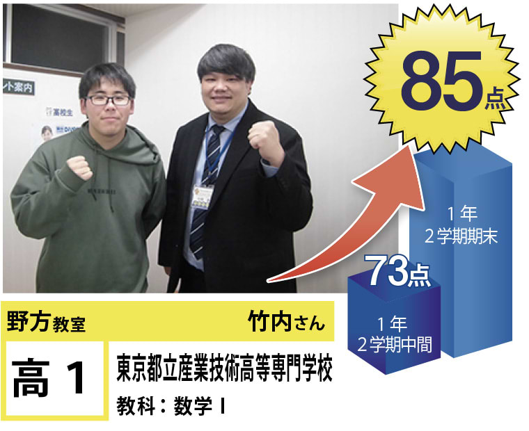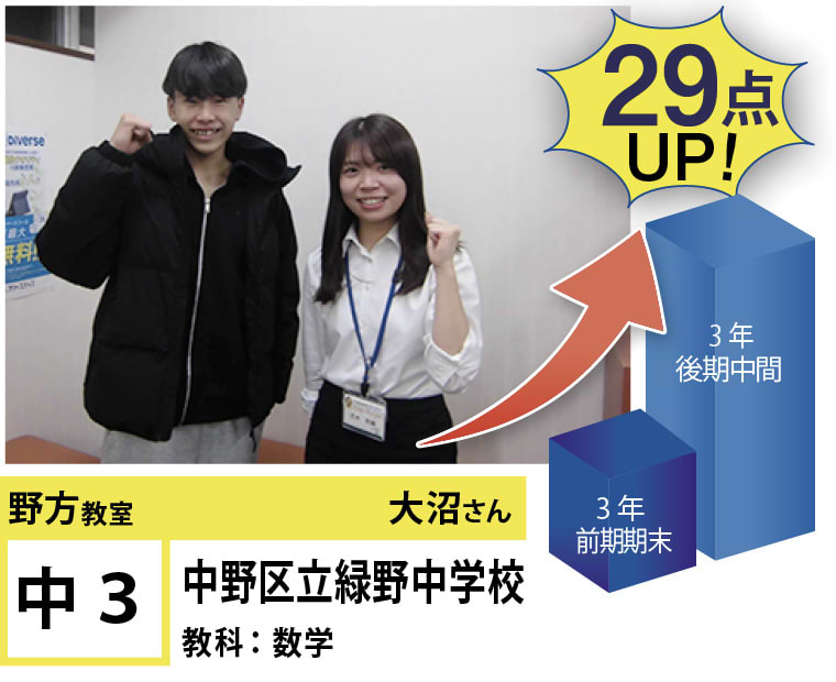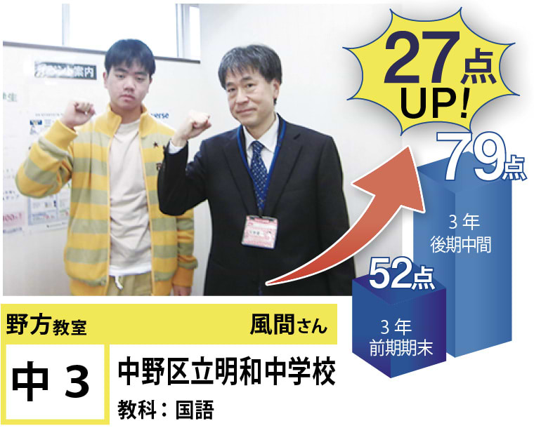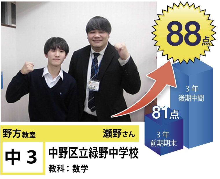 苦手分野の克服、受験指導、学習方法など、今後の学習計画でご相談のある方がいらっしゃいましたら、遠慮なく野方教室までお問い合わせください。思い立ったときに素早く行動に移し、効率のよい学習を行うことで目標達成は実現します!一緒に頑張りましょう!