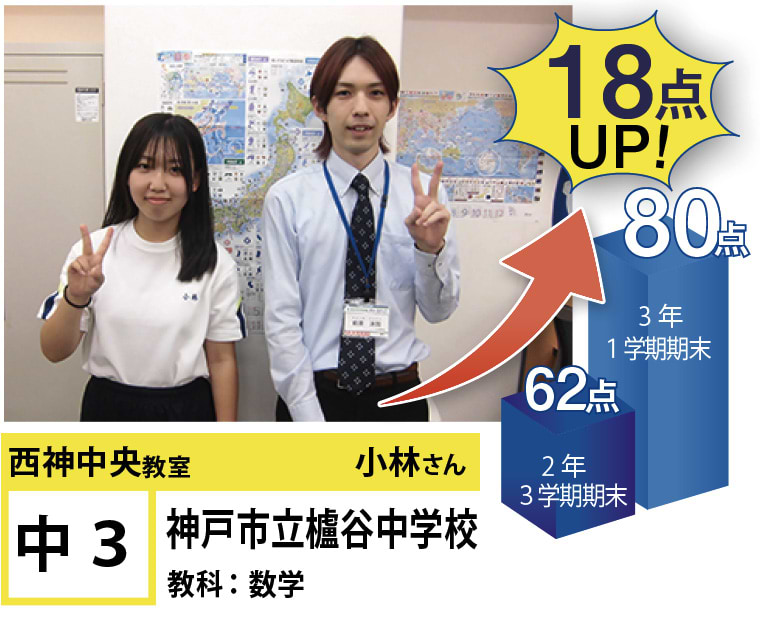 | 在籍生徒 | 小学校・・・美賀多台小学校、春日台小学校、竹の台小学校、桜が丘小学校など 中学校・・・平野中学校、西神中学校、櫨谷中学校、桜が丘中学校、押部谷中学校など 高校・・・星陵高校、北須磨高校、須磨友が丘高校、須磨翔風高校、舞子高校、神戸高塚高校など |