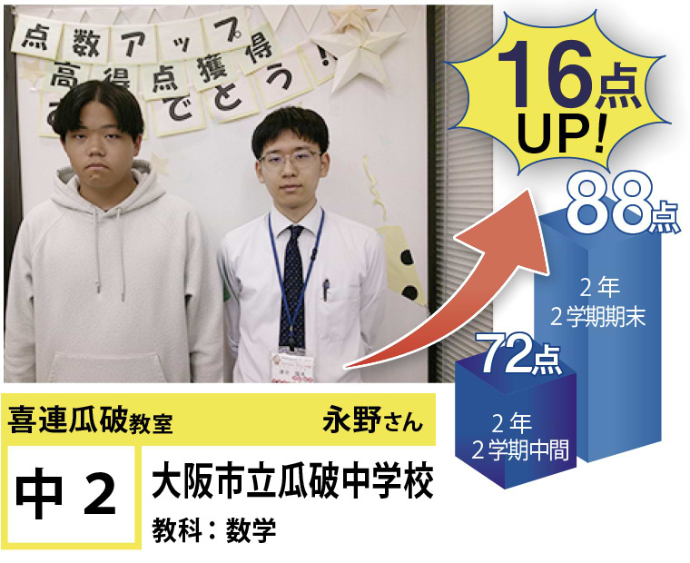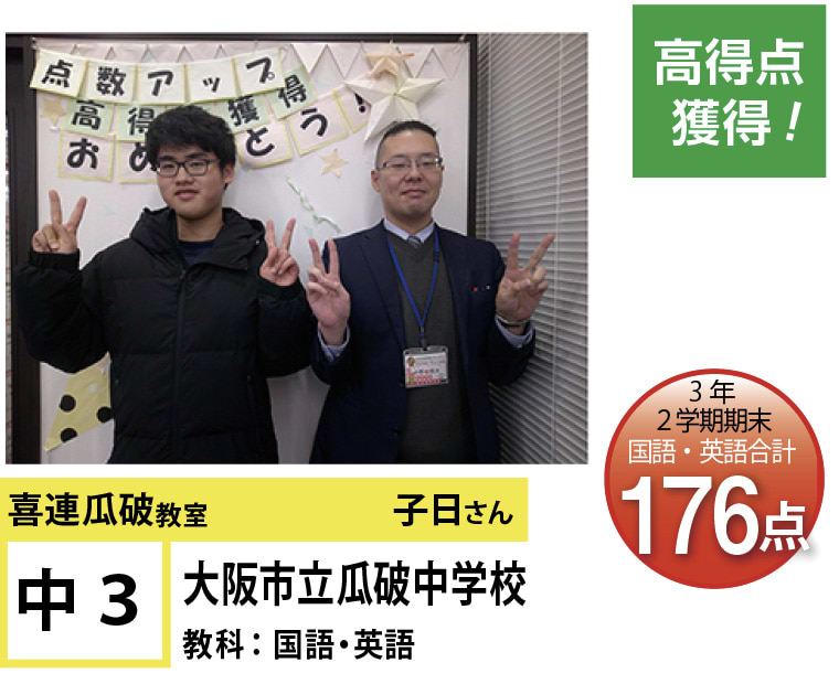 | 在籍生徒 | 小学校・・・喜連小学校、瓜破小学校、瓜破北小学校、瓜破西小学校、大阪教育大学附属平野小学校、城南小学校など 中学校・・・喜連中学校、瓜破中学校、瓜破西中学校、大阪教育大学附属平野中学校、桃山学院中学校、大阪学芸高校附属中学校など 高校・・・天王寺高校、東住吉高等学校、藤井寺高等学校、阪南高等学校、阿倍野高校、阪南大学高等学校 など |